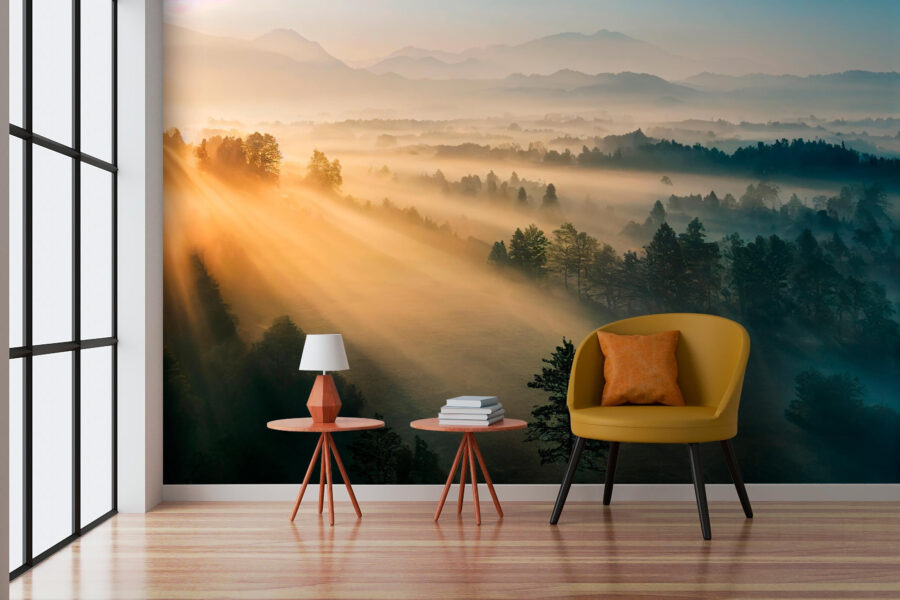 Μεταμορφώστε οποιονδήποτε χώρο με αυτή την εκπληκτική τοιχογραφία που αποτυπώνει ένα ομιχλώδες τοπίο, όπου τα δέντρα συνδυάζονται άψογα με τα βουνά στο βάθος. Φανταστείτε να ξυπνάτε με αυτή τη γαλήνια θέα κάθε μέρα, πίνοντας τον καφέ σας καθώς η πρωινή ομίχλη κυλάει – είναι σχεδόν σαν μια ζεστή αγκαλιά από τη φύση. Τα απαλά χρώματα και το απαλό φως δημιουργούν μια χαλαρωτική ατμόσφαιρα που προσκαλεί στη χαλάρωση. Ιδανικό για ένα σαλόνι ή ένα υπνοδωμάτιο, προσθέτει ένα στρώμα βάθους και ηρεμίας. Απλά φανταστείτε τους φίλους να μοιράζονται ιστορίες στη ζεστή αγκαλιά του, νιώθοντας σαν να βρίσκονται στην καρδιά μιας ειρηνικής απόδρασης από το δάσος. Άμεση ευδαιμονία!