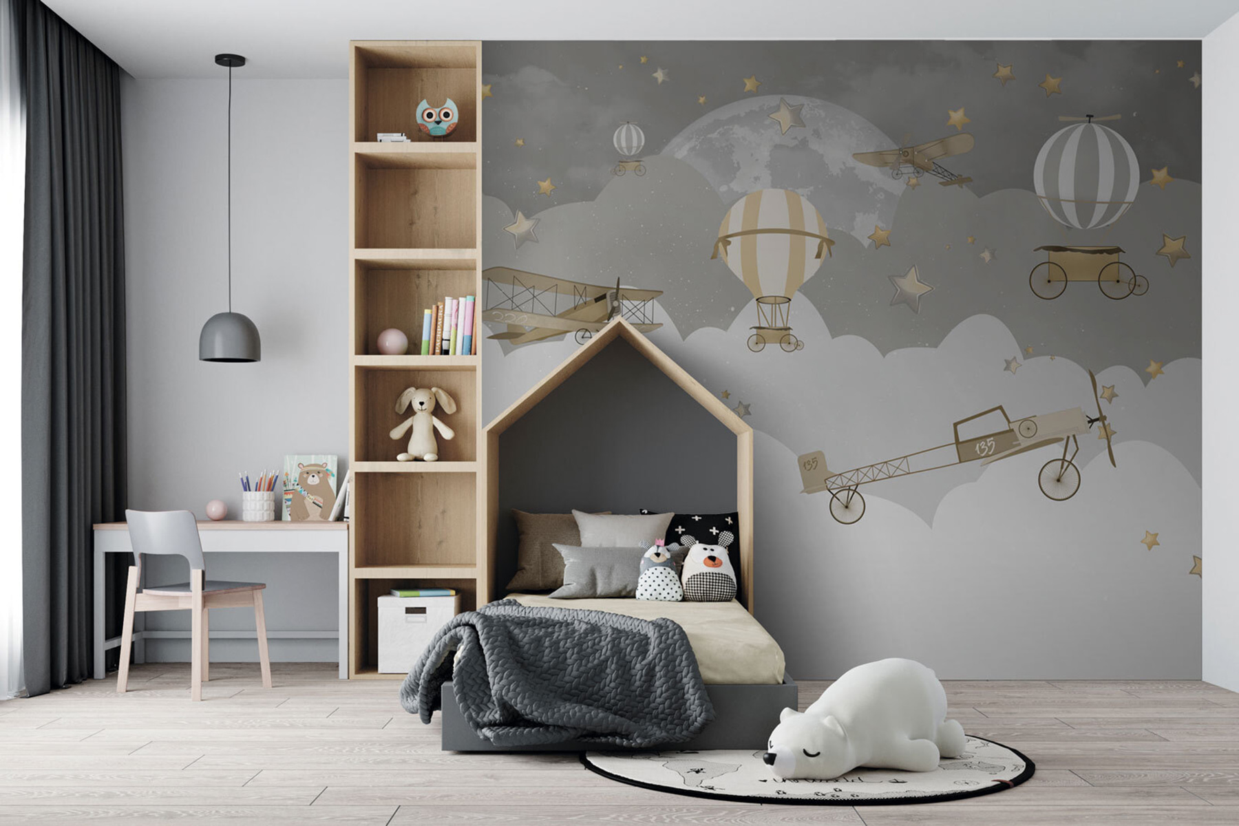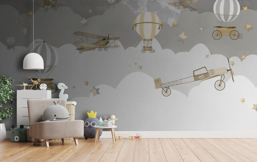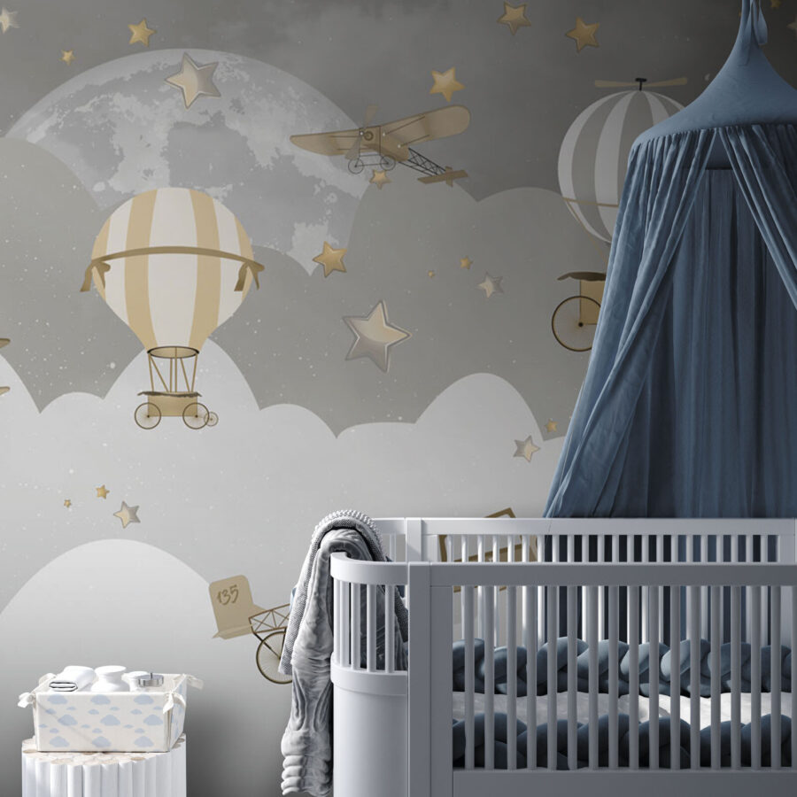Φανταστείτε να πετάτε ψηλά πάνω από ονειρικά σύννεφα και αστέρια με αυτή τη μαγευτική τοιχογραφία. Το “Vintage Aircrafts Soaring Through Stars” σας μεταφέρει σε έναν ιδιόρρυθμο νυχτερινό ουρανό, όπου αεροπλάνα και αερόστατα του παλιού καιρού παρασύρονται ανάμεσα σε αστέρια που λάμπουν. Ιδανική για να προσθέσετε μια νοσταλγική πινελιά σε κάθε χώρο, είναι μια επιτυχία τόσο για τα παιδιά όσο και για τους ενήλικες. Τα μικρά σας μπορεί να αισθάνονται σαν να πηγαίνουν σε νυχτερινές περιπέτειες, ενώ είναι επίσης ένα εξαιρετικό κομμάτι συζήτησης για έναν ξενώνα. Τα απαλά χρώματα καθιστούν αυτό το κομμάτι ευέλικτο – είναι ηρεμιστικό, αλλά εξακολουθεί να είναι γεμάτο γοητεία και χαρακτήρα. Ονειρικό και απολαυστικό, είναι σαν μια γλυκιά ιστορία ύπνου σε μορφή τοιχογραφίας.