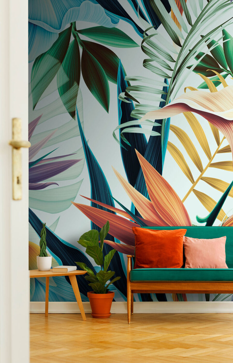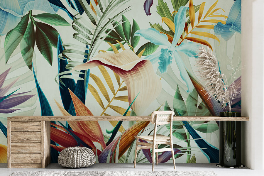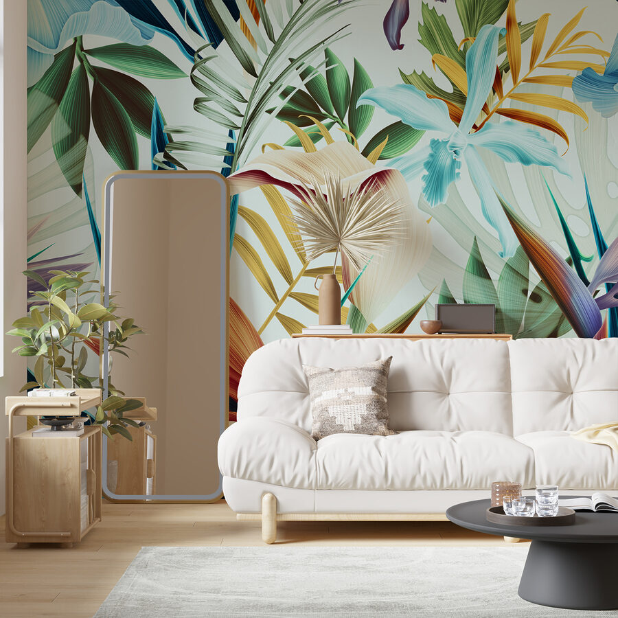 Φανταστείτε να πίνετε τον πρωινό σας καφέ με φόντο τα ζωηρά φυλλώματα – είναι σαν να βρίσκεστε σε μια τροπική ζούγκλα ακριβώς στο σαλόνι σας. Κάθε φύλλο και λουλούδι μοιάζει σαν να έχει ζωγραφιστεί από βοτανικό καλλιτέχνη με σοβαρή αγάπη για τα έντονα, εντυπωσιακά χρώματα. Δεν είναι απλώς μια ταπετσαρία, είναι μια εμπειρία, που δίνει ζωή και ένα άγγιγμα άγριας φύσης στο χώρο σας.