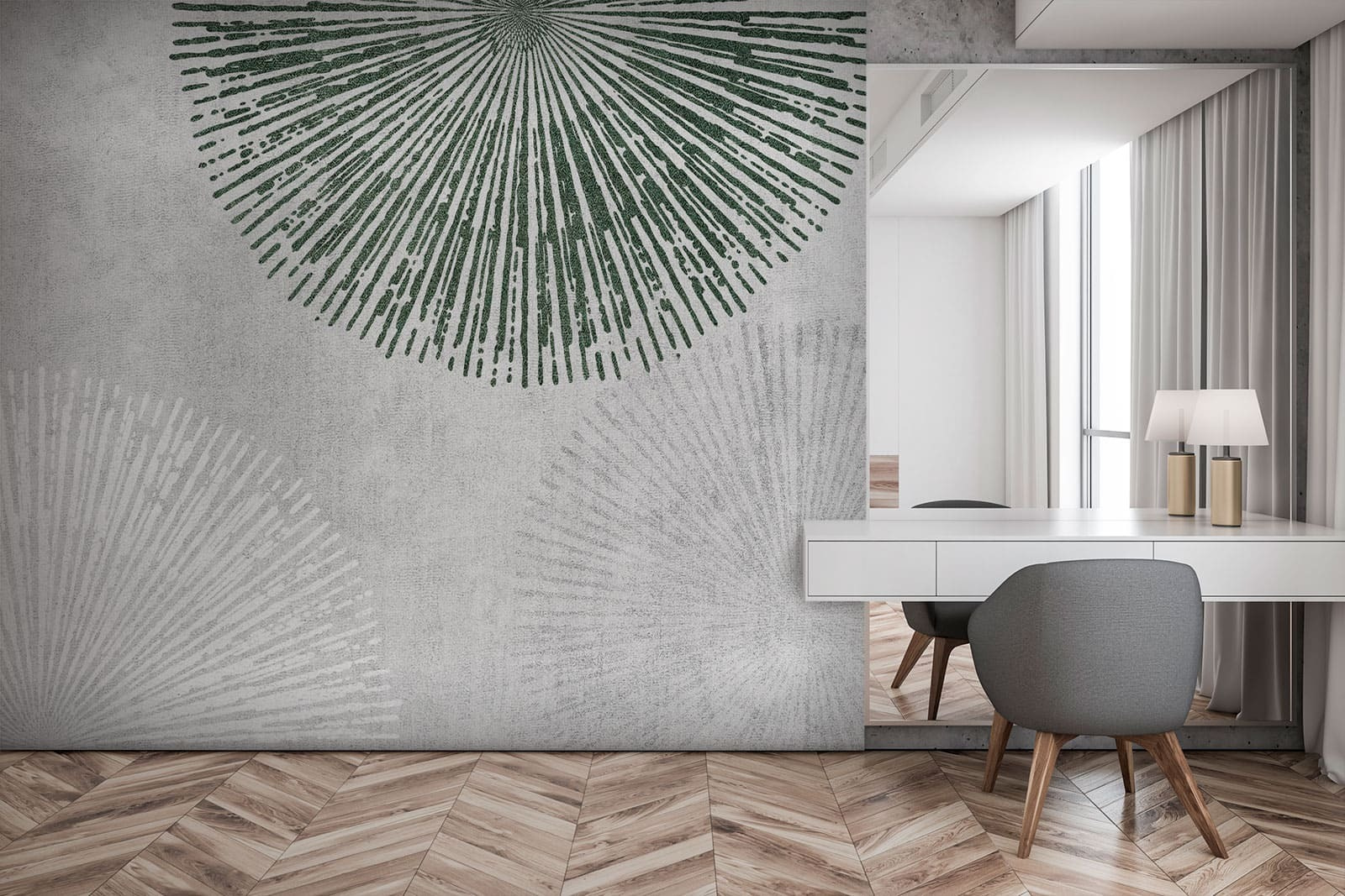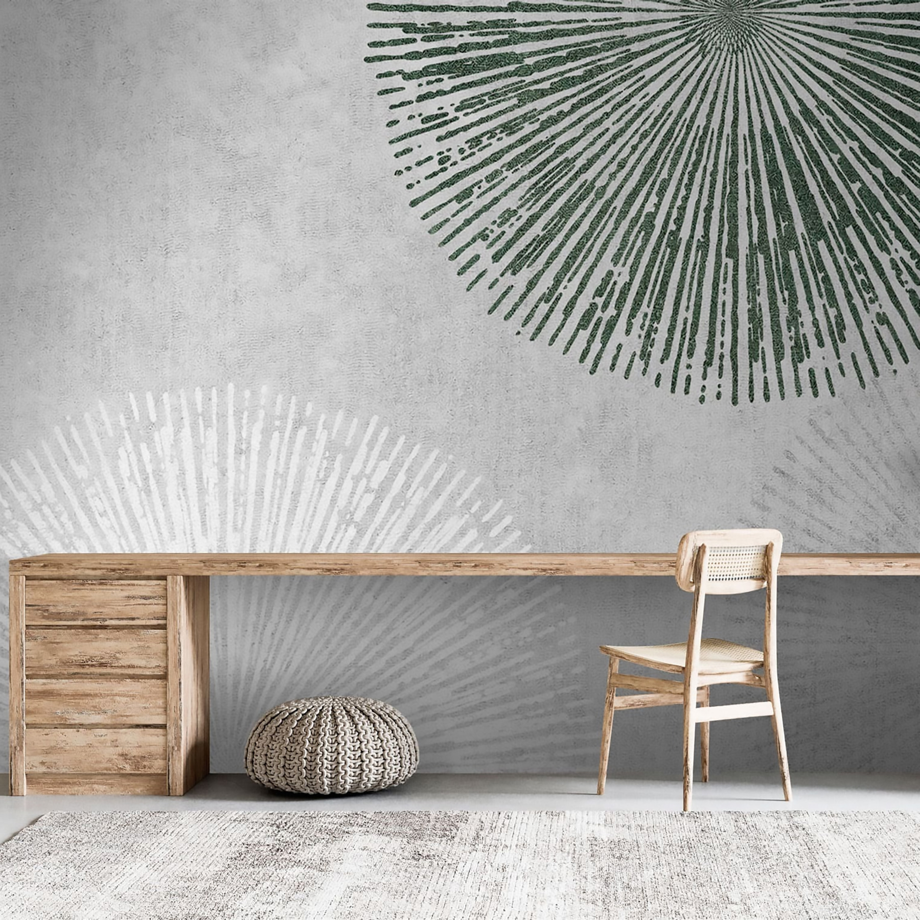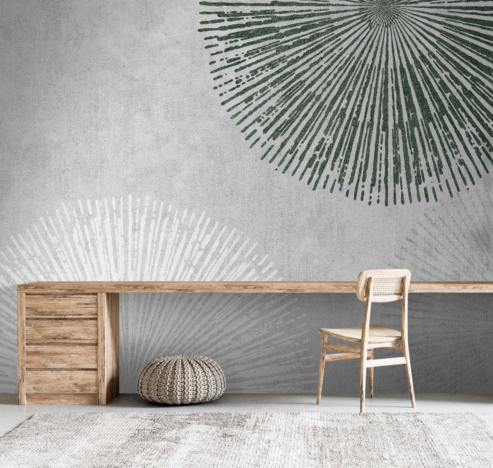 Μεταμορφώστε το χώρο σας με αυτή τη γοητευτική τοιχογραφία με παιχνιδιάρικα ακτινωτά μοτίβα σε ένα μοναδικό φόντο. Φανταστείτε το: ένα σαλόνι που ξαφνικά μοιάζει λιγότερο με το παλιό εργένικο σπίτι του ξαδέρφου σας και περισσότερο με ένα καλλιτεχνικό καφέ στην πόλη. Τα απαλά πράσινα και λευκά χρώματα δημιουργούν μια ειρηνική ατμόσφαιρα, διευκολύνοντας την χαλάρωση μετά από μια κουραστική μέρα. Οι επισκέπτες θα βρεθούν να προσελκύονται, με την περιέργειά τους να έχει κεντρίσει. Είναι σαν να φλερτάρεις με τη γεωμετρία – τολμηρό, διασκεδαστικό, αλλά αβίαστα κομψό. Μπορεί να πιάσετε τον εαυτό σας να ονειροπολεί κοιτάζοντάς το, καθώς κάθε μικρή λεπτομέρεια κεντρίζει τη φαντασία σας. Ιδανικό για όσους θέλουν ένα κομψό twist χωρίς φασαρία.
