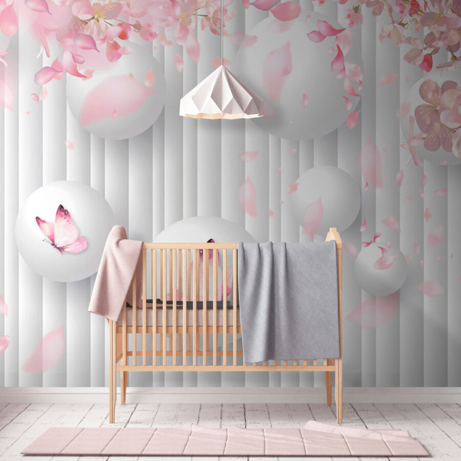 Μεταμορφώστε αυτόν τον απλό τοίχο σε ένα έργο τέχνης με αυτήν την υπέροχη τοιχογραφία, που απεικονίζει έναν φανταστικό χορό λευκών σφαιρών στολισμένων με γοητευτικές ροζ πεταλούδες. Φανταστείτε να πίνετε τον πρωινό σας καφέ σε έναν χώρο που μοιάζει με έναν γαλήνιο ιαπωνικό κήπο, όπου κάθε ματιά στον τοίχο σας προσφέρει μια μικρή έκρηξη χαράς. Τα απαλά πέταλα που πετούν γύρω σας προκαλούν την ευχάριστη αίσθηση της άνοιξης, φέρνοντας μια ζεστή, χαρούμενη ατμόσφαιρα. Είναι σαν να έχετε τη φύση μέσα στο σπίτι, χωρίς την αλλεργία στη γύρη! Ιδανική για κάθε δωμάτιο που χρειάζεται μια πινελιά ηρεμίας και δημιουργικότητας — απλά ετοιμαστείτε για τα κομπλιμέντα που θα σας κατακλύσουν! Αυτή η ταπετσαρία δεν είναι απλά διακόσμηση, είναι κάτι που σας ανεβάζει τη διάθεση.