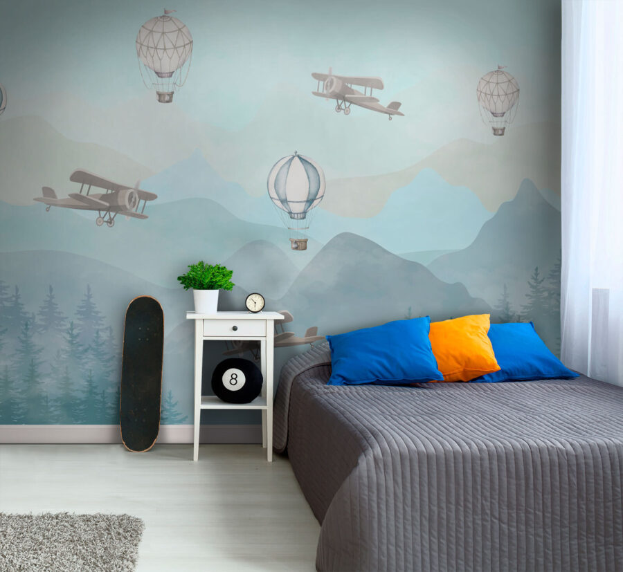 Φανταστείτε να ξυπνάτε σε έναν απαλό, ονειρικό ουρανό με vintage αεροπλάνα και γοητευτικά αερόστατα που αιωρούνται πάνω από ομιχλώδη βουνά. Αυτή η τοιχογραφία τοίχου “Αεροπλάνα και μπαλόνια πάνω από ομιχλώδη βουνά” είναι σαν ένα ιδιόρρυθμο ταξίδι σε μια γαλήνια χώρα της φαντασίας. Ιδανική για ένα παιδικό δωμάτιο, προσθέτει μια πινελιά μαγείας και θαυμασμού, εμπνέοντας καθημερινά μικρούς τυχοδιώκτες. Σκεφτείτε ηρεμιστικές ιστορίες πριν τον ύπνο ή πρωινές ονειροπολήσεις. Εύκολο στα μάτια με τις παστέλ αποχρώσεις του, θα κάνει κάθε χώρο να μοιάζει με μια ήπια απόδραση στη φαντασία. Απολύτως υπέροχο, ε; Ένα απολαυστικό μείγμα γοητείας και ηρεμίας, έτοιμο να προκαλέσει χαρά και περιέργεια.
