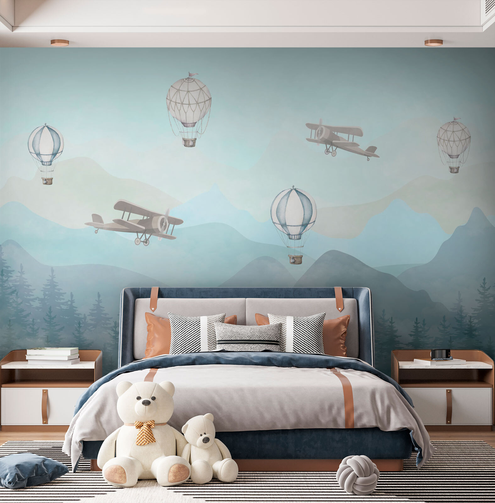 Φανταστείτε να ξυπνάτε σε έναν απαλό, ονειρικό ουρανό με vintage αεροπλάνα και γοητευτικά αερόστατα που αιωρούνται πάνω από ομιχλώδη βουνά. Αυτή η τοιχογραφία τοίχου “Αεροπλάνα και μπαλόνια πάνω από ομιχλώδη βουνά” είναι σαν ένα ιδιόρρυθμο ταξίδι σε μια γαλήνια χώρα της φαντασίας. Ιδανική για ένα παιδικό δωμάτιο, προσθέτει μια πινελιά μαγείας και θαυμασμού, εμπνέοντας καθημερινά μικρούς τυχοδιώκτες. Σκεφτείτε ηρεμιστικές ιστορίες πριν τον ύπνο ή πρωινές ονειροπολήσεις. Εύκολο στα μάτια με τις παστέλ αποχρώσεις του, θα κάνει κάθε χώρο να μοιάζει με μια ήπια απόδραση στη φαντασία. Απολύτως υπέροχο, ε; Ένα απολαυστικό μείγμα γοητείας και ηρεμίας, έτοιμο να προκαλέσει χαρά και περιέργεια.