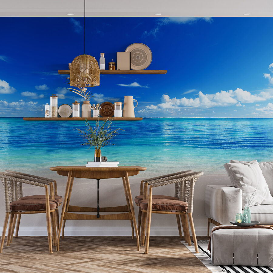 Ονειρευτήκατε ποτέ να έχετε ένα κομμάτι του παραδείσου στο σαλόνι σας; Αυτή η τοιχογραφία τοίχου, με την εύστοχη ονομασία “Γαλάζιος ουρανός με σύννεφα”, ίσως είναι το εισιτήριό σας. Φανταστείτε να κοιτάζετε από τον καναπέ σας και να μεταφέρεστε αμέσως σε μια γαλήνια παραλία – τα απαλά κύματα που χτυπούν, ο γαλαζοπράσινος ουρανός διάστικτος με χνουδωτά σύννεφα. Είναι σαν μια μίνι-διακοπή κάθε φορά που κοιτάζετε τον τοίχο σας. Ιδανικό για να προσθέσετε μια πινελιά ηρεμίας σε κάθε χώρο, είτε πρόκειται για μια ζεστή γωνιά ανάγνωσης είτε για μια πολυσύχναστη τραπεζαρία. Φανταστείτε τους φίλους σας να έρχονται και να νιώθουν αμέσως αυτή τη στιγμή ahhhh, σαν να έχουν μπει σε μια καμπάνα στην παραλία. Εισπνεύστε, εκπνεύστε και αφήστε την ηρεμία να σας κατακλύσει – δεν απαιτείται άμμος στα παπούτσια σας!