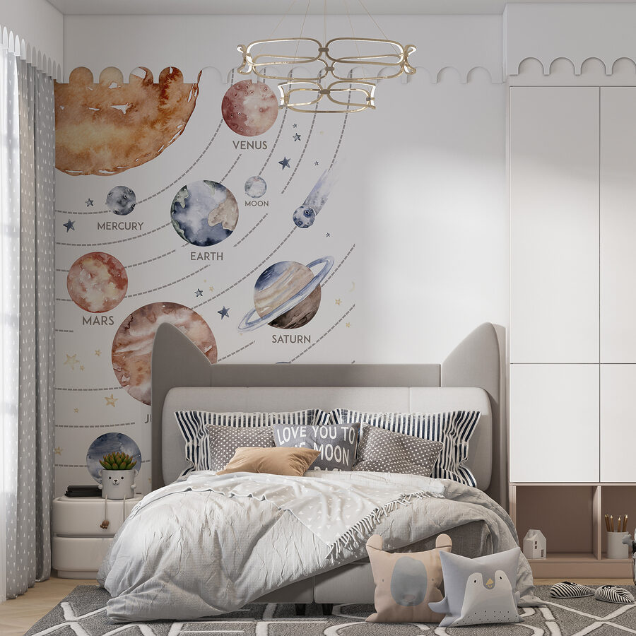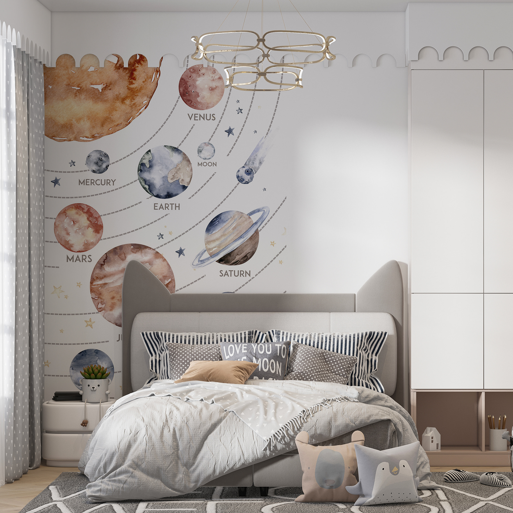 Φανταστείτε νυχτερινές ώρες ύπνου κάτω από την απαλή λάμψη των δαχτυλιδιών του Κρόνου ή ζωηρά παιχνίδια με τον Ερμή και τον Δία να παρακολουθούν. Έχει αυτή την ηρεμιστική καλλιτεχνική ατμόσφαιρα που απλά αισθάνεστε σωστά – δεν υπάρχουν δύσκαμπτες, βαρετές εκπαιδευτικές αφίσες εδώ. Μόνο ένα όμορφο, μοναδικό κομμάτι που φέρνει μια βουτιά από τη μαγεία του γαλαξία στο σπίτι σας. Είτε αναβαθμίζετε ένα παιδικό δωμάτιο είτε προσθέτετε γοητεία σε ένα παιδικό δωμάτιο, αυτή η τοιχογραφία είναι μια εξαιρετική επιλογή. 🌟