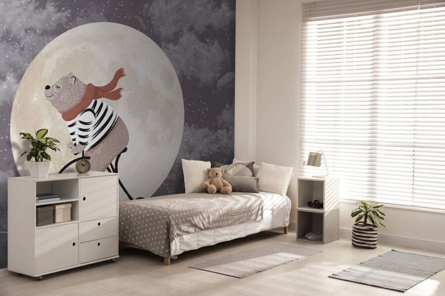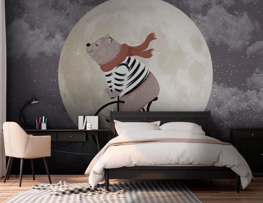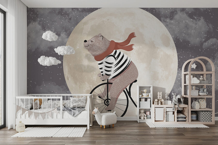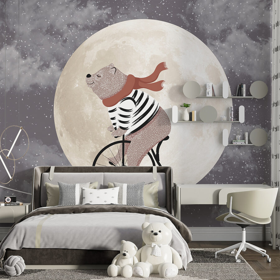 Φανταστείτε ένα άνετο παιδικό δωμάτιο, όπου οι ιστορίες του ύπνου ζωντανεύουν στους τοίχους. Η τοιχογραφία “Ο αρκούδος κάνει ποδήλατο στο φεγγάρι” φέρνει αυτή τη μαγική ατμόσφαιρα κατευθείαν σε κάθε παιδικό χώρο. Είναι ιδιόρρυθμη, με αυτό το γοητευτικό αρκουδάκι με ριγέ πουκάμισο και κασκόλ να κάνει ποδήλατο σε ένα τεράστιο, λαμπερό φεγγάρι. Δεν χρειάζεται να το πολυσκεφτείτε – είναι απλά διασκεδαστικό και ιδιόρρυθμο. Ιδανικό για να κεντρίσει τη φαντασία και ίσως να προκαλέσει μερικά γέλια. Φανταστείτε το μικρό σας να το κοιτάζει κάθε βράδυ και να κάνει μεγάλα όνειρα. Αυτό είναι το είδος της ζεστασιάς που φέρνει αυτή η τοιχογραφία.