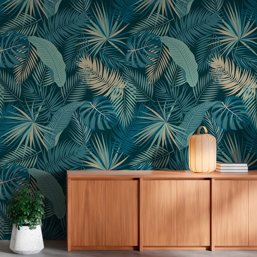 Αυτή η τοιχογραφία τοίχου, με το ζωηρό τροπικό μοτίβο, είναι η τέλεια προσθήκη ζωής που αναζητά ο χώρος σας. Φανταστείτε να μπαίνετε σε μια πλούσια, ζωντανή ζούγκλα κάθε φορά που μπαίνετε στο δωμάτιό σας – μια εξωτική απόδραση, έτσι δεν είναι; Φορτωμένο με ζωηρά πράσινα φύλλα και καταπραϋντικά μπλε, αυτό το σχέδιο μοιάζει με μια ζεστή, ηλιόλουστη μέρα, ακόμα κι αν έξω είναι ζοφερή.