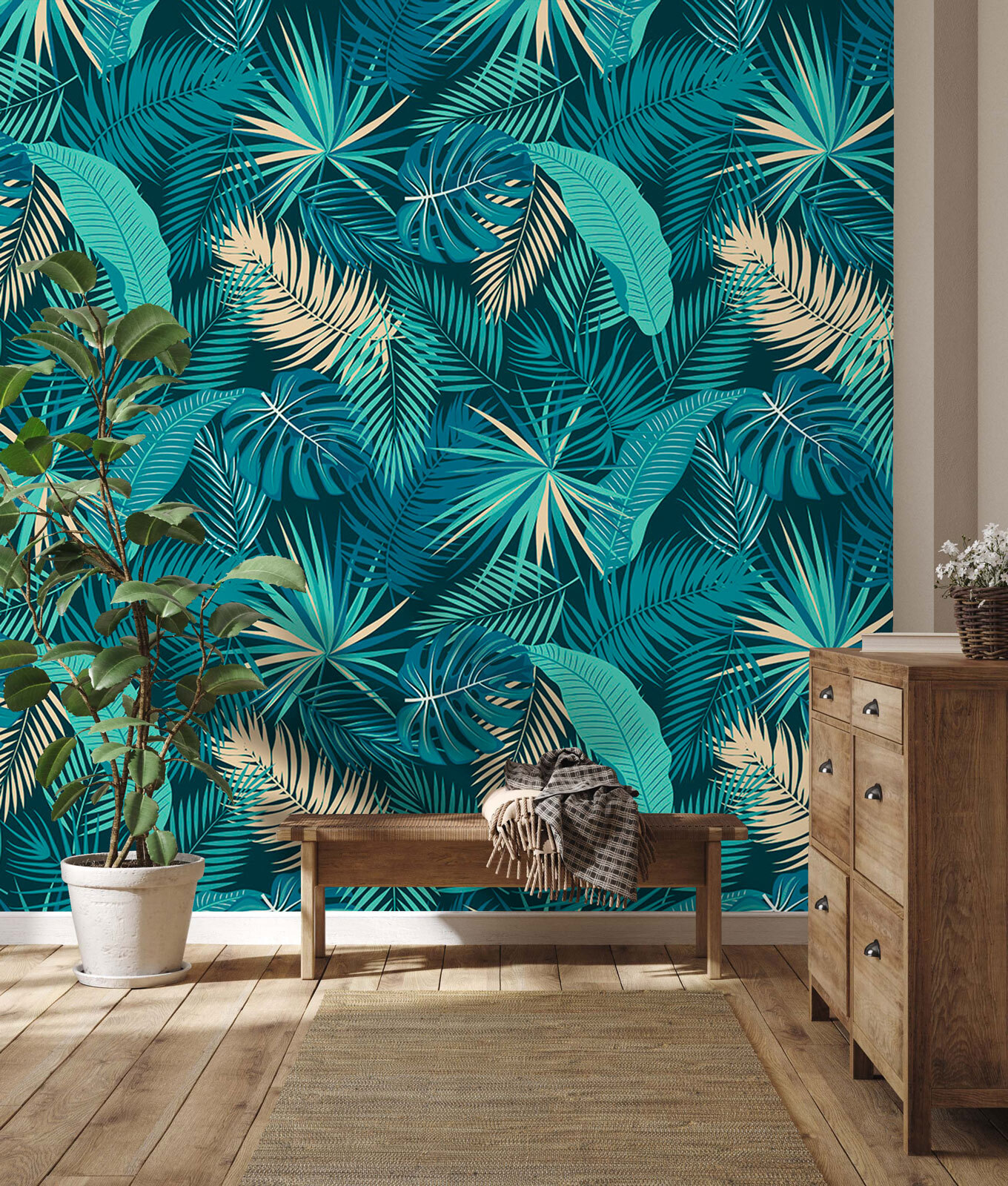 Αυτή η τοιχογραφία τοίχου, με το ζωηρό τροπικό μοτίβο, είναι η τέλεια προσθήκη ζωής που αναζητά ο χώρος σας. Φανταστείτε να μπαίνετε σε μια πλούσια, ζωντανή ζούγκλα κάθε φορά που μπαίνετε στο δωμάτιό σας – μια εξωτική απόδραση, έτσι δεν είναι; Φορτωμένο με ζωηρά πράσινα φύλλα και καταπραϋντικά μπλε, αυτό το σχέδιο μοιάζει με μια ζεστή, ηλιόλουστη μέρα, ακόμα κι αν έξω είναι ζοφερή.