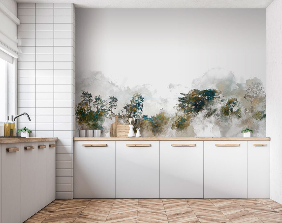 Μεταμορφώστε το χώρο σας με αυτή την ονειρική τοιχογραφία με δέντρα και σύννεφα. Είναι σαν να έχετε μια γαλήνια σκηνή της φύσης στον τοίχο σας. Φανταστείτε να ξυπνάτε μπροστά σε απαλά πράσινα και μπλε χρώματα, προσκαλώντας μια αίσθηση ηρεμίας και ζεστασιάς. Μπορείτε σχεδόν να ακούσετε το θρόισμα των φύλλων και να νιώσετε ένα απαλό αεράκι. Ιδανική για ένα άνετο σαλόνι ή ένα ήσυχο υπνοδωμάτιο, αυτή η τοιχογραφία προσθέτει βάθος και προσωπικότητα χωρίς να είναι φωναχτή. Δεν είναι απλώς διακόσμηση, είναι σαν να έχετε ένα κομμάτι ειρηνικής φύσης στο εσωτερικό, κάνοντας κάθε ματιά να μοιάζει με μια μίνι απόδραση. Ποιος δεν θα το λάτρευε αυτό;
