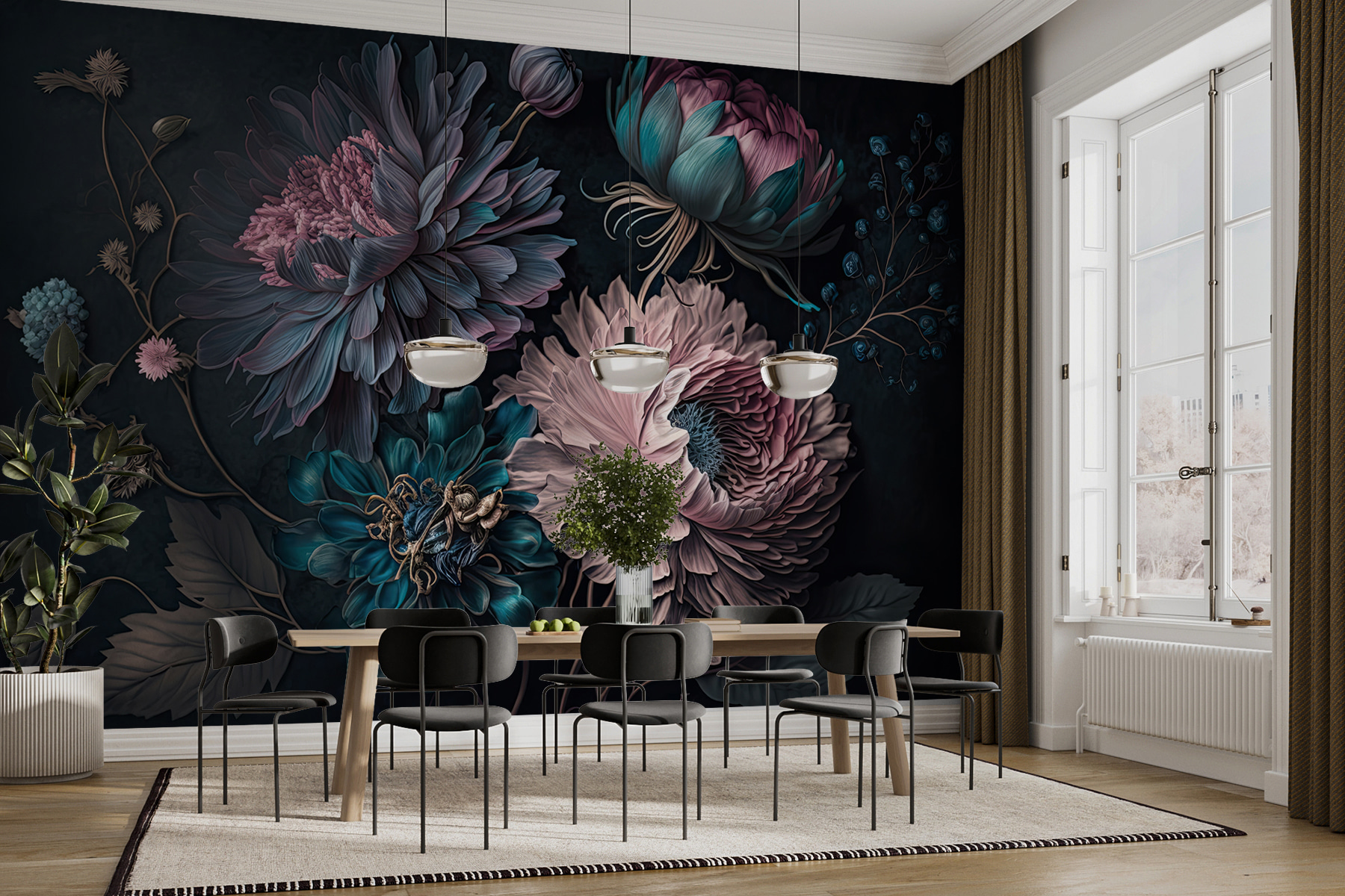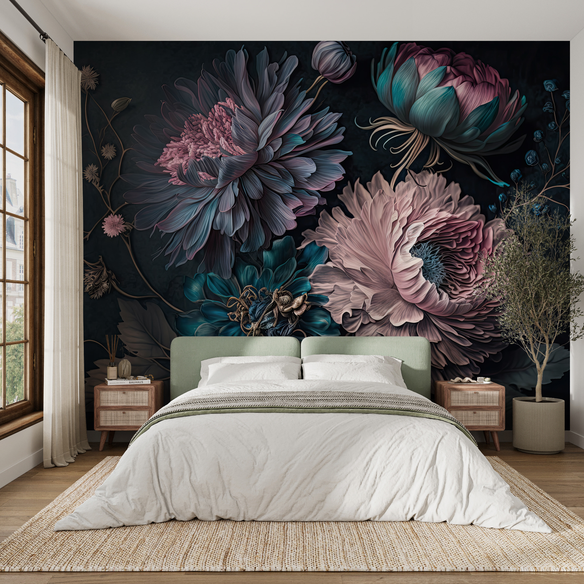 Μεταμορφώστε οποιονδήποτε χώρο με αυτή την εκπληκτική τοιχογραφία με ζωντανά λουλούδια σε μια μαγική διάταξη. Είναι σαν να φέρνετε έναν κήπο στο σπίτι χωρίς το βρώμικο χώμα ή τα ενοχλητικά ζωύφια. Φανταστείτε να ξυπνάτε με αυτά τα όμορφα άνθη κάθε μέρα! Τα πλούσια χρώματα δημιουργούν μια ζεστή, φιλόξενη ατμόσφαιρα, ιδανική για σαλόνια ή άνετες γωνιές. Φανταστείτε να φιλοξενείτε φίλους – όλοι θα έλκονται από αυτόν τον τοίχο, θαυμάζοντας αυτά τα περίτεχνα πέταλα. Είναι ένας άμεσος εκκινητής συζήτησης, πιστέψτε με. Δεν χρειάζεται να έχετε πράσινο αντίχειρα εδώ, μόνο αγάπη για την ομορφιά και μια δόση δημιουργικότητας. Η τέχνη του τοίχου δεν ήταν ποτέ τόσο ζωντανή!
