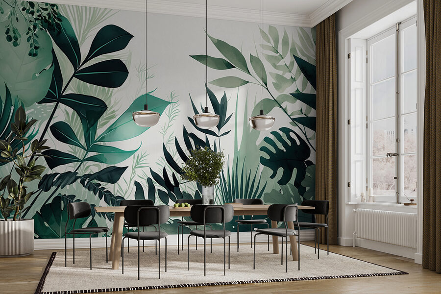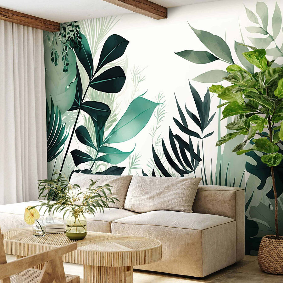 Ονειρευτήκατε ποτέ να μετατρέψετε το σαλόνι σας σε μια καταπράσινη ζούγκλα χωρίς να χρειάζεται να ποτίζετε και να κλαδεύετε; Αυτή η τοιχογραφία τοίχου “Πλούσια πράσινα φύλλα σε λευκό φόντο” είναι ο νέος σας καλύτερος φίλος. Φανταστείτε να ξυπνάτε κάθε μέρα και να αισθάνεστε σαν να βρίσκεστε σε ένα τροπικό καταφύγιο! Με ζωηρά πράσινα φύλλα που ξεπροβάλλουν σε έναν καθαρό λευκό καμβά, αυτή η τοιχογραφία δίνει ζωή σε κάθε χώρο. Ιδανική για τους λάτρεις των φυτών με, ας πούμε, όχι και τόσο πράσινο αντίχειρα. Είναι σαν να χαρίζετε στους τοίχους σας μια αναζωογονητική μέρα σπα. Και ποιος δεν χρειάζεται λίγο περισσότερο ζεν στη ζωή του; Κρεμάστε το στην κρεβατοκάμαρά σας, στο σαλόνι ή ακόμα και στο θλιβερό γραφείο του σπιτιού σας. Ξαφνικά, κάθε μέρα θα μοιάζει με μίνι διακοπές. Ας το παραδεχτούμε, σας αξίζει λίγος παράδεισος. Επιπλέον, δεν χρειάζεται να σκουπίζετε φύλλα!