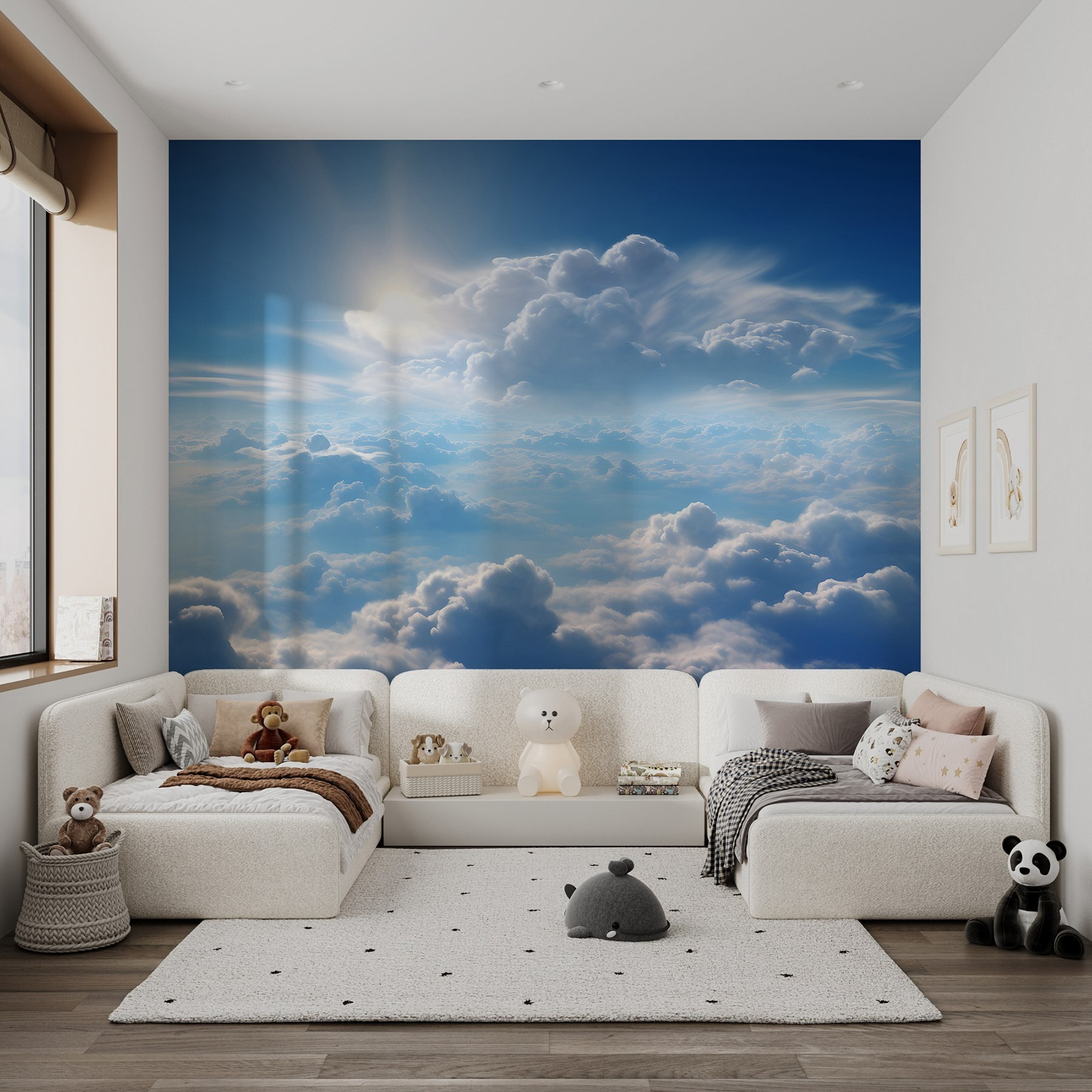 Μεταμορφώστε οποιονδήποτε χώρο σε μια ονειρική απόδραση με αυτή την εκπληκτική τοιχογραφία με τα χνουδωτά σύννεφα σε έναν φωτεινό μπλε ουρανό. Φανταστείτε τον ήλιο να ξεπροβάλλει, ρίχνοντας μια απαλή λάμψη που ανεβάζει αμέσως τη διάθεση. Είναι σαν να έχετε ένα κομμάτι αυτής της τέλειας ημέρας ακριβώς στον τοίχο σας. Ιδανικό για ένα σαλόνι, υπνοδωμάτιο ή ακόμα και για μια ζεστή γωνιά ανάγνωσης, προσκαλεί σε ονειροπολήσεις και χαλάρωση. Απλά φανταστείτε να βυθίζεστε σε μια άνετη πολυθρόνα, με ένα ζεστό ποτό στο χέρι, ενώ ο κόσμος έξω σβήνει. Αυτή η τοιχογραφία είναι μια ανάσα φρέσκου αέρα, φέρνοντας γαλήνη χωρίς να χρειάζεστε αεροπορικό εισιτήριο. Ποιος δεν θέλει να αισθάνεται σαν να αιωρείται στα σύννεφα;