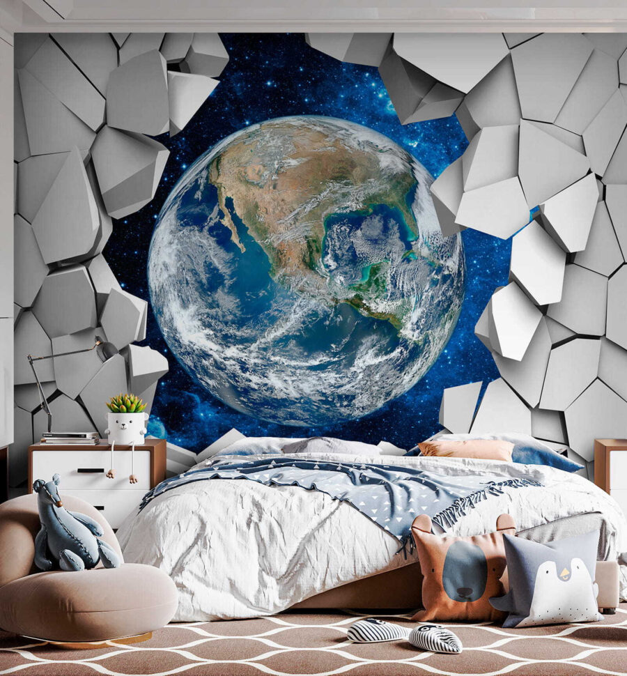 Έι, κοιτάξτε αυτή την κακιά τοιχογραφία: “Λευκό εξάγωνο με μαύρες άκρες”. Είναι σαν να μπαίνεις σε έναν φουτουριστικό κόσμο – σούπερ γαμάτο, σωστά; Φανταστείτε το στο δωμάτιο ενός παιδιού – θα αισθάνονται σαν εξερευνητές που περνούν κάθε πρωί από μια πύλη σε μια άλλη διάσταση. Τα εξάγωνα δημιουργούν ένα τρισδιάστατο εφέ που κάνει το δωμάτιο να ξεχωρίζει!