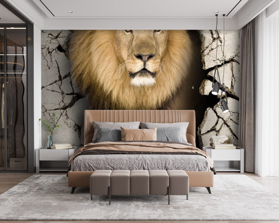 Μεταμορφώστε τον χώρο σας με αυτή την εκπληκτική ταπετσαρία τοίχου — ένα μεγαλοπρεπές λιοντάρι που κάνει μια τολμηρή είσοδο. Δεν είναι απλώς μια όμορφη εικόνα, είναι σαν να έχετε ένα κομμάτι της άγριας φύσης στο σαλόνι σας. Φανταστείτε να χαλαρώνετε στον καναπέ, να κοιτάζετε αυτό το λιοντάρι που περπατά μέσα από έναν ραγισμένο τοίχο και να νιώθετε μια έξαψη περιπέτειας. Είναι ιδανικό για όσους αγαπούν να συνδυάζουν την κομψότητα με μια νότα άγριας φύσης. Επιπλέον, μπορεί να σας προκαλέσει ένα χαμόγελο όταν οι καλεσμένοι σας κοιτάξουν ξανά με έκπληξη: «Μήπως αυτό το λιοντάρι μόλις πέρασε μέσα από τον τοίχο;» Είναι ένα έργο που προκαλεί συζήτηση και περιέργεια, κάνοντας κάθε δωμάτιο να φαίνεται ζωντανό και δυναμικό. Ιδανικό για τους λάτρεις των ζώων ή για όσους θέλουν να προσθέσουν μια απροσδόκητη πινελιά στη διακόσμηση τους!