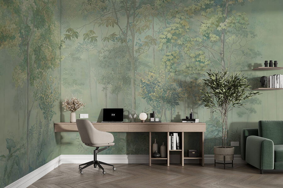 Μεταμορφώστε οποιονδήποτε χώρο σε ένα ηρεμιστικό καταφύγιο με αυτή την τοιχογραφία ενός δέντρου σε ένα ομιχλώδες δάσος. Φανταστείτε να ξυπνάτε σε ένα απαλό, ονειρικό τοπίο, όπου η απαλή ομίχλη αγκαλιάζει τα ψηλά δέντρα, κάνοντάς σας να αισθάνεστε ότι έχετε απομονωθεί στη φύση. Είναι σαν την προσωπική σας απόδραση ακριβώς σε αυτούς τους τοίχους. Ένας μικρός χώρος μπορεί ξαφνικά να αισθάνεται απέραντος και γαλήνιος, προσκαλώντας σε ονειροπολήσεις για περιπάτους στο δάσος ή για άνετες γωνιές ανάγνωσης. Επιπλέον, προσθέτει μια μοναδική πινελιά – ποιος δεν θα ήθελε μια καθημερινή υπενθύμιση του ειρηνικού δάσους; Είναι καταπραϋντικό και αναζωογονητικό, ένα τέλειο μείγμα για όποιον επιθυμεί λίγη ηρεμία στη ζωή του.