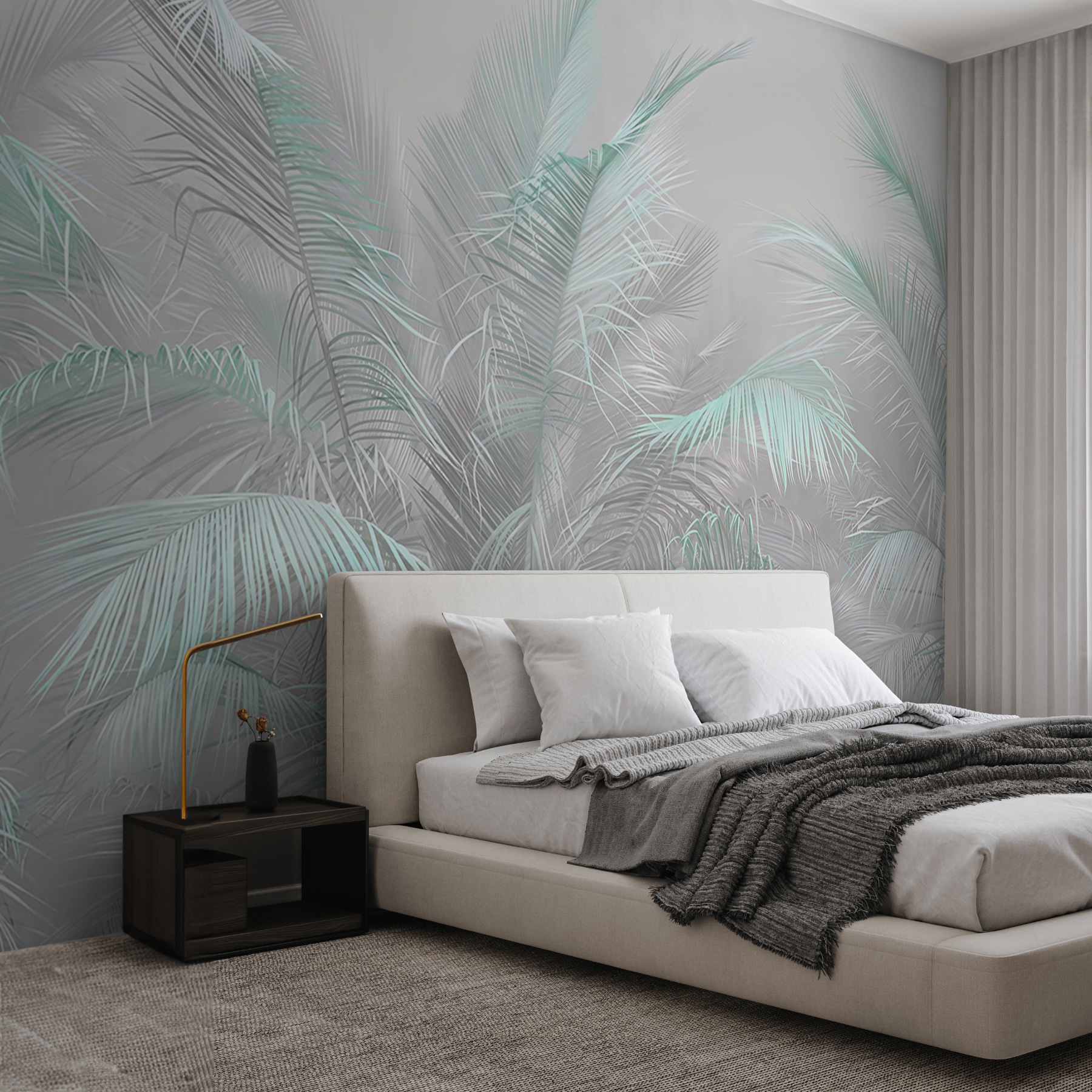 Σκεφτήκατε ποτέ να φέρετε έναν μικρό τροπικό παράδεισο στο σαλόνι σας; Αυτή η παστέλ τοιχογραφία με φύλλα φοίνικα κάνει ακριβώς αυτό! Με τις απαλές ομιχλώδεις δονήσεις της και τα ηρεμιστικά πράσινα, είναι σαν να μπαίνετε σε έναν ονειρικό, γαλήνιο κήπο κάθε φορά που κοιτάτε τον τοίχο σας. Φανταστείτε να έρχεστε σπίτι μετά από μια κουραστική μέρα, να βγάζετε τα παπούτσια σας και να σας υποδέχεται αυτή η καταπραϋντική βουτιά της φύσης – άμεση χαλάρωση, σωστά;