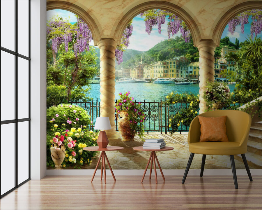 Φανταστείτε να κοιτάτε έξω από το παράθυρό σας και να μεταφέρεστε σε έναν πολύχρωμο κήπο με θέα σε ένα γαλήνιο λιμάνι. Αυτό ακριβώς σας δίνει αυτή η τοιχογραφία “Πολύχρωμος κήπος με θέα το λιμάνι”. Είναι σαν μια ανάσα φρέσκου αέρα – ακριβώς στο σαλόνι σας. Φλοράλ καλοσύνη συνυφασμένη με γραφικά πέτρινα μονοπάτια και ζεστό, ηλιόλουστο τοπίο. Είναι σαν να μπαίνεις σε μια ονειρική καρτ ποστάλ. Μπορείς σχεδόν να νιώσεις τη θαλασσινή αύρα, σωστά;