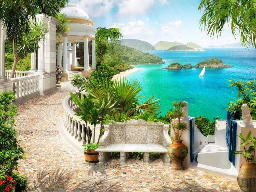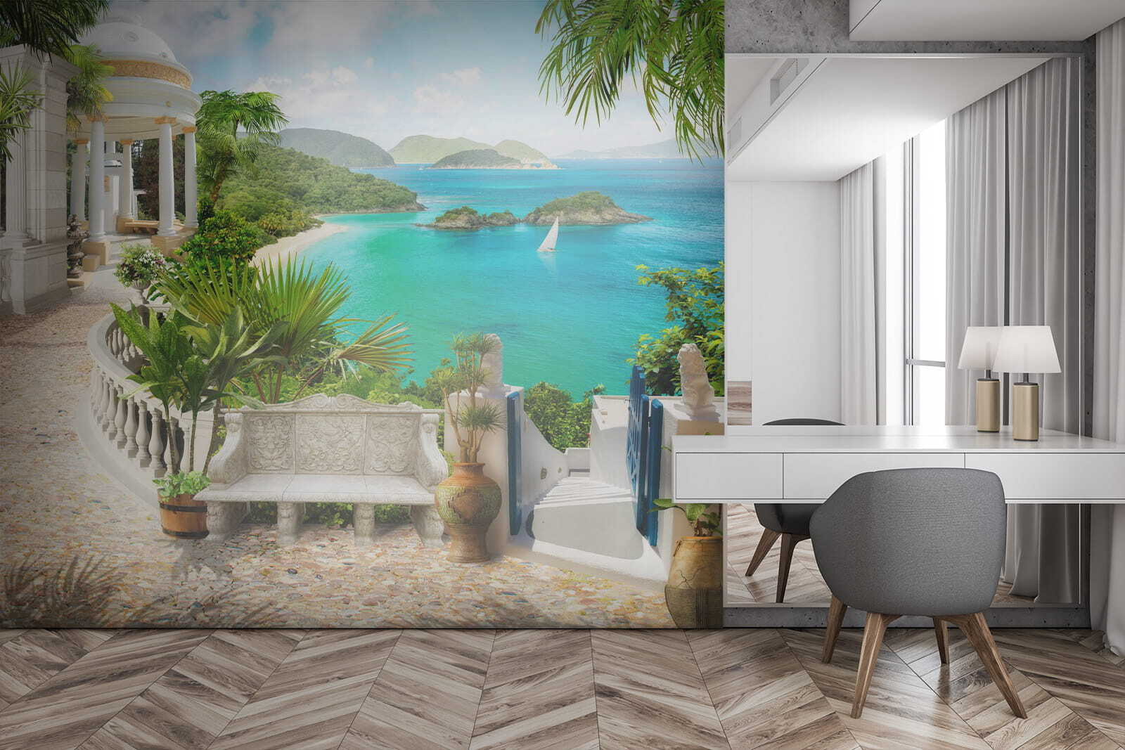 Φανταστείτε το εξής: μπαίνοντας στο δωμάτιό σας μεταφέρεστε αμέσως σε έναν γαλήνιο παραθαλάσσιο παράδεισο. Αυτό ακριβώς κάνει το “Ταπετσαρίες Plant in a Pot”. Είναι σαν να έχετε ένα μίνι σημείο διακοπών ακριβώς στον τοίχο σας. Αυτά τα καταπράσινα φυτά, το γαλήνιο λευκό περίπτερο και το μαγευτικό τυρκουάζ νερό – είναι η τέλεια γαλήνη!