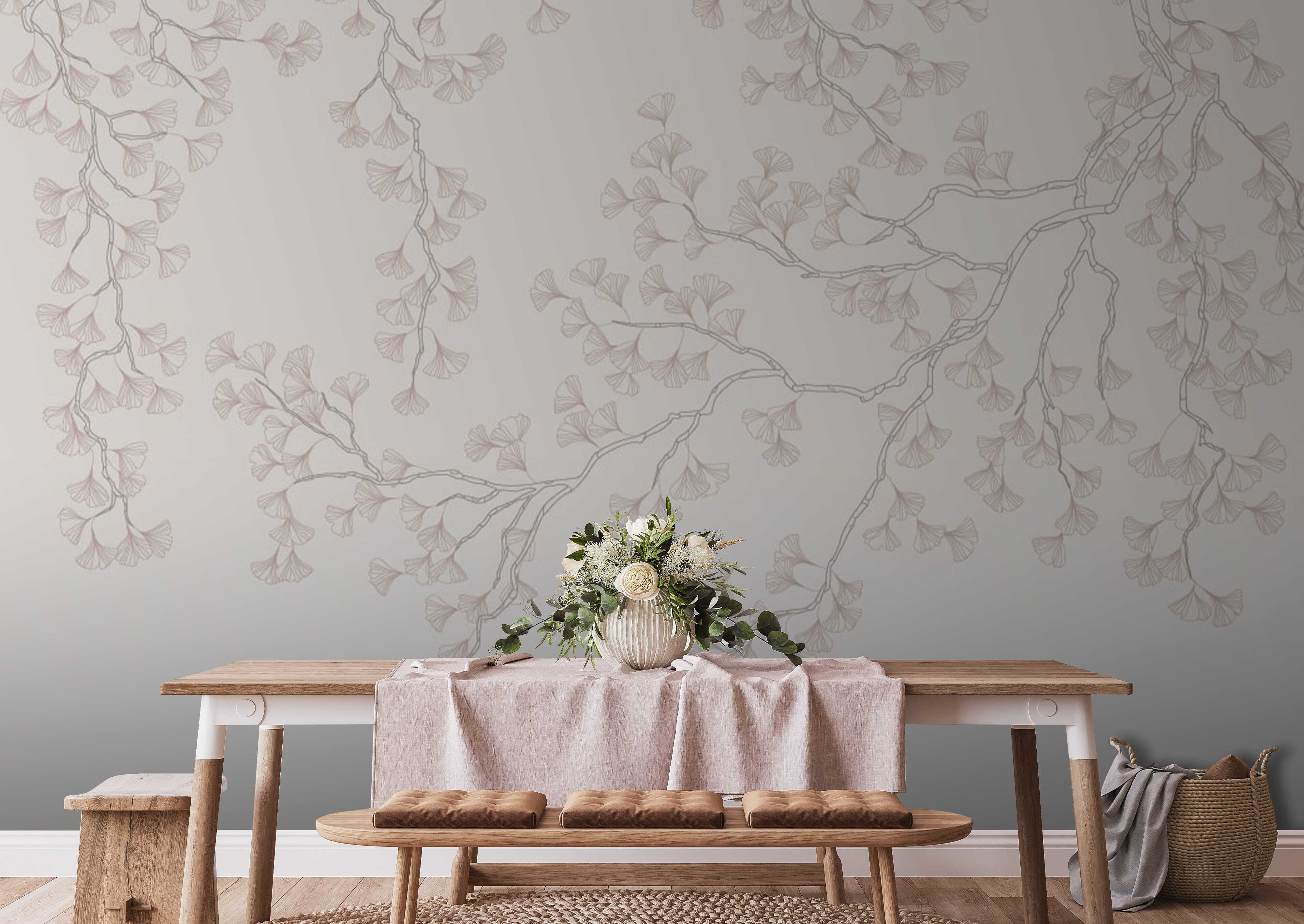 Ας μιλήσουμε για την τοιχογραφία “Flowing pattern of ginkgo branches”. Φανταστείτε να μπαίνετε σε ένα δωμάτιο όπου αυτές οι λεπτές γραμμές και οι απαλές χρωματικές αποχρώσεις των κλαδιών γκίνγκο ρέουν αβίαστα στον τοίχο. Είναι σαν να φέρνετε ένα κομμάτι της γαλήνιας φύσης κατευθείαν στο σπίτι σας. Ιδανικό για κάθε δωμάτιο όπου θέλετε μια πινελιά ήρεμης κομψότητας. Τα κλαδιά μοιάζουν σχεδόν να λικνίζονται σε ένα απαλό αεράκι – μπορεί ακόμη και να πιάσετε τον εαυτό σας να ονειροπολεί ενώ τα κοιτάζετε. Είτε πρόκειται για το σαλόνι σας, είτε για το υπνοδωμάτιό σας, είτε ακόμη και για μια ζεστή γωνιά ανάγνωσης, αυτή η τοιχογραφία μετατρέπει έναν απλό τοίχο σε μια ήρεμη απόδραση.