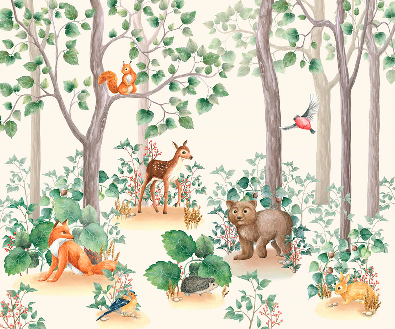Step into a whimsical forest without ever leaving your home! This delightful wall mural, featuring charming animals like a playful squirrel and a curious deer, invites a slice of nature right into your space. Imagine sipping your morning coffee while watching a tiny fox peek out or getting lost in thoughts as a bear ambles by. It’s like having a wild tea party, but without the messy cleanup. The soft greens and earthy tones create a warm, inviting vibe—perfect for cozying up with a good book. Whether it’s a nursery or a living room, this mural sparks joy. It whispers tales of nature, calling you to unwind. Who wouldn’t want a little woodland magic in their life?