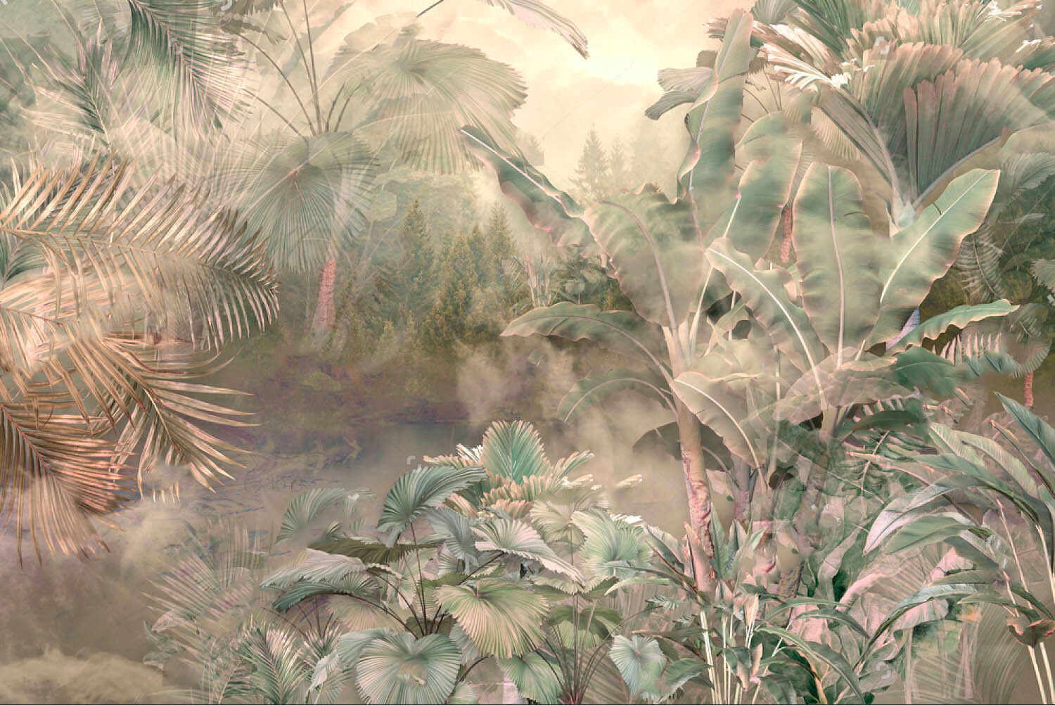 Transform any room into a serene escape with the “Foggy Forest with Trees and Plants” mural. Imagine stepping into a misty jungle, where soft greens and nature’s whispers mingle. This mural’s gentle allure invites tranquility—perfect for cozy spaces or even that busy office that could use a moment of zen. The lush foliage almost sways in the breeze, can you feel it? Picture those lazy afternoons, sipping tea while you pretend you’re lounging in a rainforest. A splash of nature’s beauty comes home, and let’s be honest—who wouldn’t want that? Accessorize with a few potted plants, and boom—instant jungle vibes!