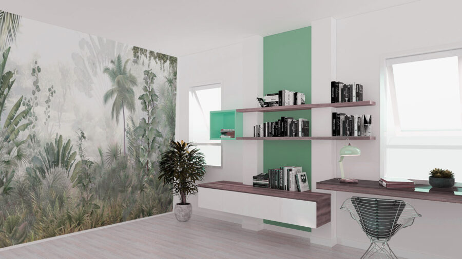 Υφές και χρώματα τόσο πλούσια που σχεδόν θα μπορούσατε να ακούσετε τα πουλιά να κελαηδούν και να νιώσετε ένα ζεστό αεράκι. Είναι σαν να σχεδίασε η Μητέρα Φύση τη διακόσμησή σας! Μια τέλεια αφορμή για συζήτηση, αυτή η τοιχογραφία δημιουργεί μια καθηλωτική εμπειρία ζούγκλας – χωρίς τα έντομα και την υγρασία, φυσικά. Είναι ιδανική για τροπικά θέματα και συνδυάζεται καλά με ξύλινες πινελιές ή μινιμαλιστική διακόσμηση. Σοβαρά, ποιος δεν θα ήθελε να προσθέσει μια δόση περιπέτειας στην καθημερινότητά του;