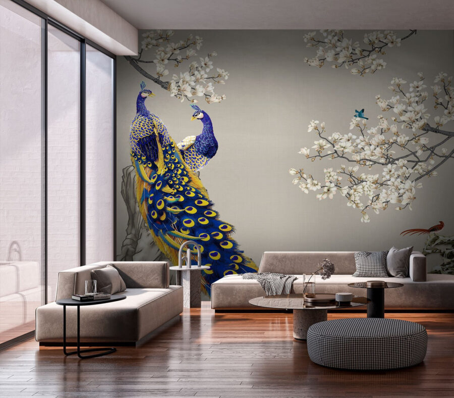 Σκεφτήκατε ποτέ να δώσετε στο χώρο σας τον παράγοντα “wow” χωρίς πολλή φασαρία; Γνωρίστε την τοιχογραφία τοίχου “Majestic Peacocks”. Είναι σαν η άνοιξη να έκανε makeover και να προσγειώθηκε ακριβώς στο σαλόνι σας. Αυτά τα παγώνια επιδεικνύουν αυτά τα εντυπωσιακά χρώματα, σκαρφαλωμένα ανάμεσα σε κομψά ανθισμένα κλαδιά – είναι η επίδειξη της φύσης με τον καλύτερο δυνατό τρόπο. Φανταστείτε να επιστρέφετε στο σπίτι μετά από μια κουραστική μέρα και να σας υποδέχεται αυτή η σκηνή – καθαρή χαλάρωση, σωστά; Έχετε έναν φίλο που του αρέσει πάντα η μοναδική διακόσμηση; Αυτό εδώ είναι ένα εγγυημένο στοιχείο που θα σας ξετρελάνει. Επιπλέον, οι τοίχοι σας; Άμεση αφορμή για συζήτηση. Είτε πρόκειται για το σαλόνι είτε για την κρεβατοκάμαρά σας, αφήστε αυτά τα παγώνια να φιγουράρουν και να φέρουν λίγη ακαταμάχητη γοητεία στο σπίτι σας.
