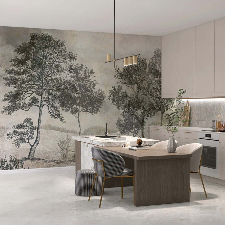 Φανταστείτε να χαλαρώνετε σε ένα δωμάτιο που ψιθυρίζει γαλήνη. Η τοιχογραφία “Χαραγμένα δέντρα σε γαλήνιο τοπίο” είναι σαν μια απαλή αγκαλιά από τη φύση. Έχετε αυτή τη γοητευτική γοητεία που μαγεύει με την όψη ξύλου με μια σύγχρονη πινελιά – αφηρημένη, αλλά κατά κάποιο τρόπο, τόσο υπέροχα οικεία. Φανταστείτε το: απαλές αποχρώσεις, περίπλοκες γραμμές που απεικονίζουν χαριτωμένα δέντρα, μετατρέποντας αμέσως το χώρο σας σε μια όαση ηρεμίας. Είναι σαν να δραπετεύετε σε ένα ονειρικό δάσος, χωρίς να χρειάζεται να ετοιμάσετε βαλίτσα. Ιδανικό για εκείνα τα τεμπέλικα κυριακάτικα απογεύματα ή όταν απλά χρειάζεστε μια ανάσα. Και ειλικρινά, έχει αυτή την ακαταμάχητη ατμόσφαιρα “πού το βρήκες αυτό;”. Χαρίστε στους τοίχους σας ένα άγγιγμα γαλήνης – το αξίζουν.