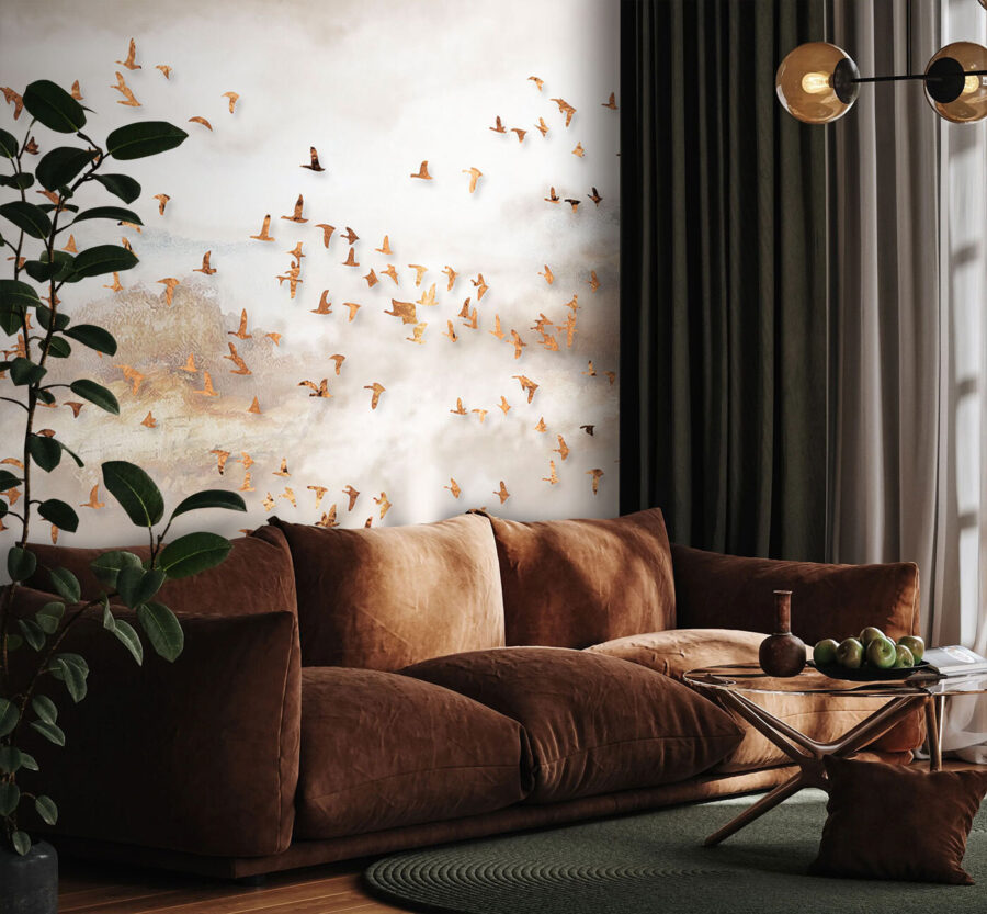 Μεταμορφώστε οποιοδήποτε δωμάτιο σε μια γαλήνια απόδραση με αυτή την εκπληκτική τοιχογραφία τοίχου με μια ομάδα πουλιών που πετούν σε έναν ονειρικό ουρανό. Τα απαλά χρώματα και τα χαριτωμένα πουλιά δημιουργούν μια ατμόσφαιρα που μοιάζει ήρεμη και ανεβαστική, όπως ένα φρέσκο αεράκι μια ανοιξιάτικη μέρα. Φανταστείτε να απολαμβάνετε τον πρωινό καφέ ή να χαλαρώνετε μετά από μια κουραστική μέρα κοιτάζοντας αυτή τη μαγευτική σκηνή. Σας προσελκύει, προκαλώντας ονειροπολήσεις και ιστορίες. Επιπλέον, προσθέτει μια κομψή πινελιά σε κάθε χώρο, είτε πρόκειται για ένα άνετο σαλόνι είτε για ένα ήρεμο υπνοδωμάτιο. Ποιος δεν θα ήθελε να αισθάνεται σαν να πετάει στα σύννεφα;