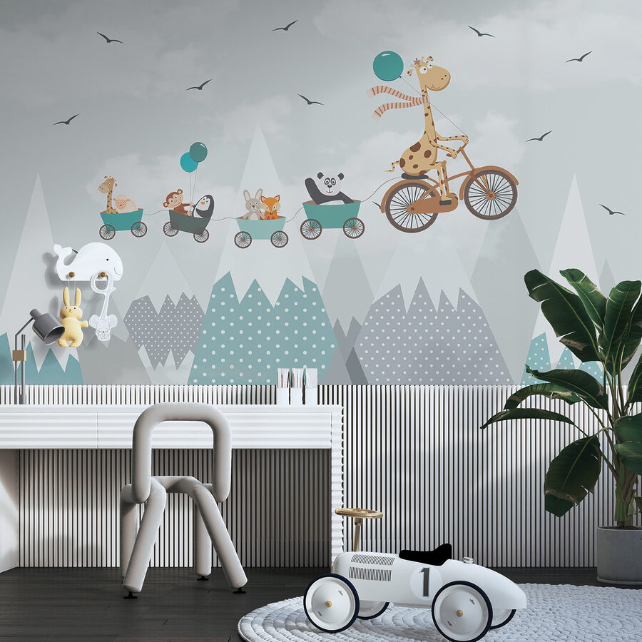 Ψάχνετε να προσθέσετε λίγη ιδιοτροπία στο δωμάτιο του παιδιού σας; Ελέγξτε τις “τοιχογραφίες τοίχου Καμηλοπάρδαλη καβάλα σε ποδήλατο” – είναι σαν ένα απολαυστικό όνειρο της ημέρας που εκτοξεύεται στον τοίχο τους. Αυτή η διασκεδαστική τοιχογραφία δείχνει μια περιπετειώδη καμηλοπάρδαλη να κάνει πετάλι σε ένα ονειρικό τοπίο, σέρνοντας μαζί της μια παρέλαση αξιολάτρευτων ζώων. Τα απαλά παστέλ και οι παιχνιδιάρικες σκηνές θα μεταφέρουν το μικρό σας σε έναν κόσμο φαντασίας, καθιστώντας την ιδανική για παιδικά δωμάτια ή παιδότοπους. Φανταστείτε τις ιστορίες πριν τον ύπνο να μετατρέπονται σε απίστευτα ταξίδια με αυτό το σκηνικό. Επιπλέον, αυτά τα γοητευτικά πουά και τα βουνά; Πολύ χαριτωμένα. Αυτή η τοιχογραφία δεν είναι απλώς διακόσμηση – είναι ένα εισιτήριο για περιπέτεια κάθε μέρα.