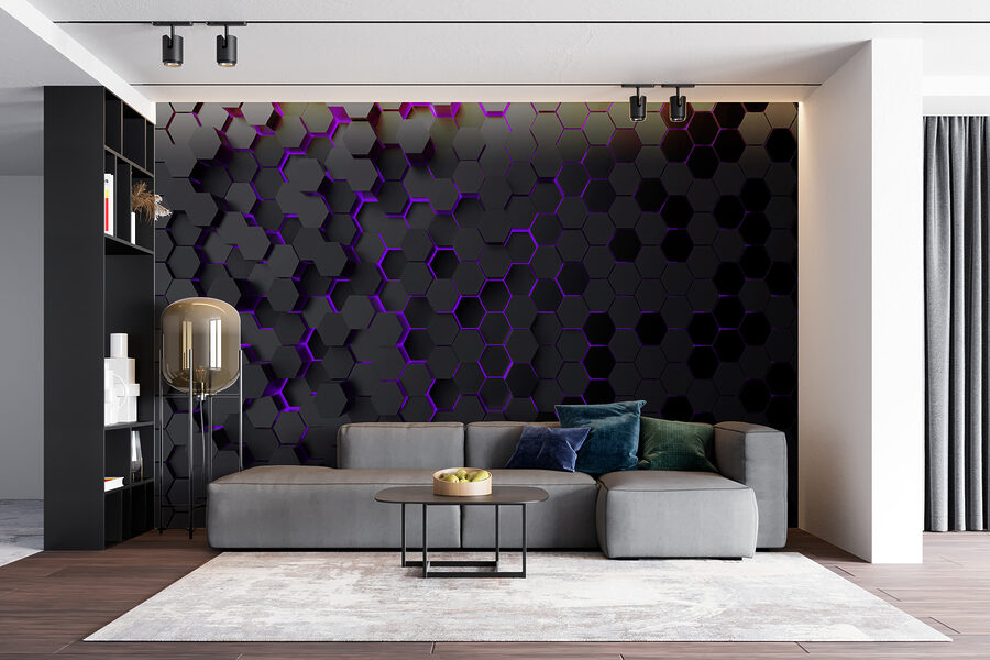 Δείτε αυτή την τοιχογραφία με τίτλο “Μαύρα και μωβ εξάγωνα” – μιλάμε για ένα τολμηρό κομμάτι! Είναι σαν να φέρνετε μια φουτουριστική ατμόσφαιρα κατευθείαν στο χώρο σας. Φανταστείτε να μπαίνετε σε ένα δωμάτιο όπου οι τοίχοι σας έχουν αυτό το μαγευτικό τρισδιάστατο εφέ. Αυτές οι μαύρες και μοβ αποχρώσεις δημιουργούν αυτό το δροσερό παιχνίδι σκιών και φωτός που δίνει στον χώρο ένα εντυπωσιακό βάθος.