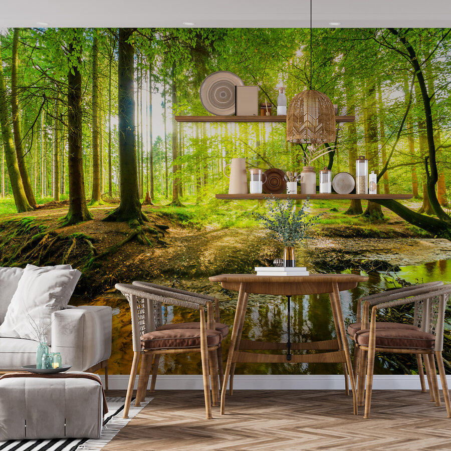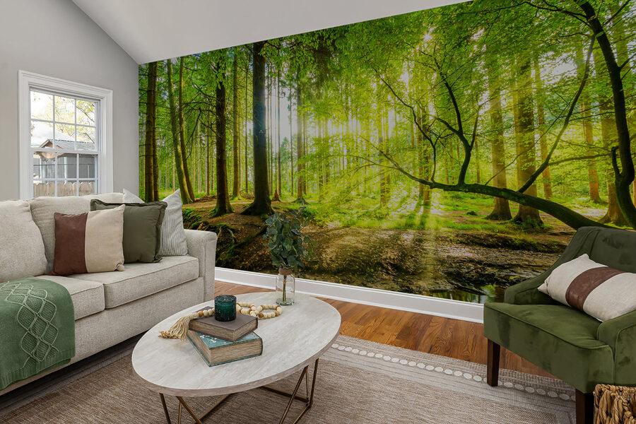 Φανταστείτε να μπαίνετε στο δικό σας μικρό δασικό καταφύγιο κάθε φορά που μπαίνετε στο δωμάτιο. Αυτή η τοιχογραφία φέρνει μια ζωντανή σκηνή δάσους στον χώρο σας, με ψηλά δέντρα και το φως του ήλιου να φιλτράρεται μέσα από τα φύλλα. Είναι σαν η ίδια η φύση να έχει αποφασίσει να μετακομίσει. Απλά φανταστείτε να κουλουριάζεστε με ένα καλό βιβλίο, περιτριγυρισμένοι από αποχρώσεις του πράσινου και τις απαλές, γήινες δονήσεις ενός δασικού δαπέδου. Και αν ποτέ χρειαστείτε μια στιγμή για να ξεφύγετε από την καθημερινότητα, αυτή η τοιχογραφία σας καλύπτει. Ιδανική για να πυροδοτήσετε ονειροπολήσεις για πεζοπορίες και υπαίθριες περιπέτειες ή απλώς για να απολαύσετε ένα ζεστό βράδυ σε εσωτερικό χώρο. Είναι μια πινελιά ηρεμίας που κάνει μεγάλο αντίκτυπο, μετατρέποντας κάθε τοίχο σε μια ανάσα δροσιάς. Ποιος θα μπορούσε να αντισταθεί;