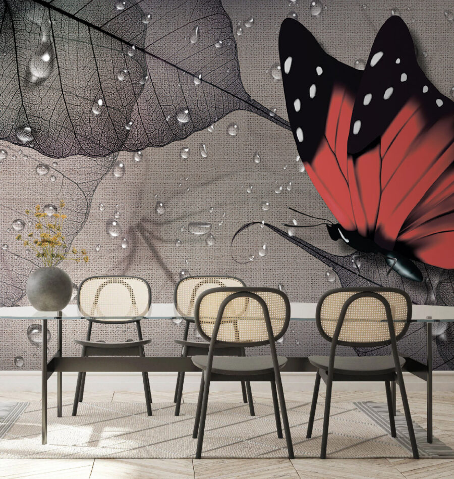 Μεταμορφώστε οποιοδήποτε δωμάτιο σε ένα γαλήνιο καταφύγιο με την μαγευτική ταπετσαρία τοίχου «Πεταλούδα σε φύλλο». Φανταστείτε το εξής: μπαίνετε μέσα και ξαφνικά! Μια εντυπωσιακή πεταλούδα κάθεται σε ένα φύλλο που έχει αγγίξει απαλά μια σταγόνα βροχής. Είναι το είδος του έργου τέχνης που μπορεί να σας κάνει να σταματήσετε, να χαμογελάσετε και ίσως ακόμη και να ονειρευτείτε ότι πετάτε σε έναν γαλήνιο κήπο.