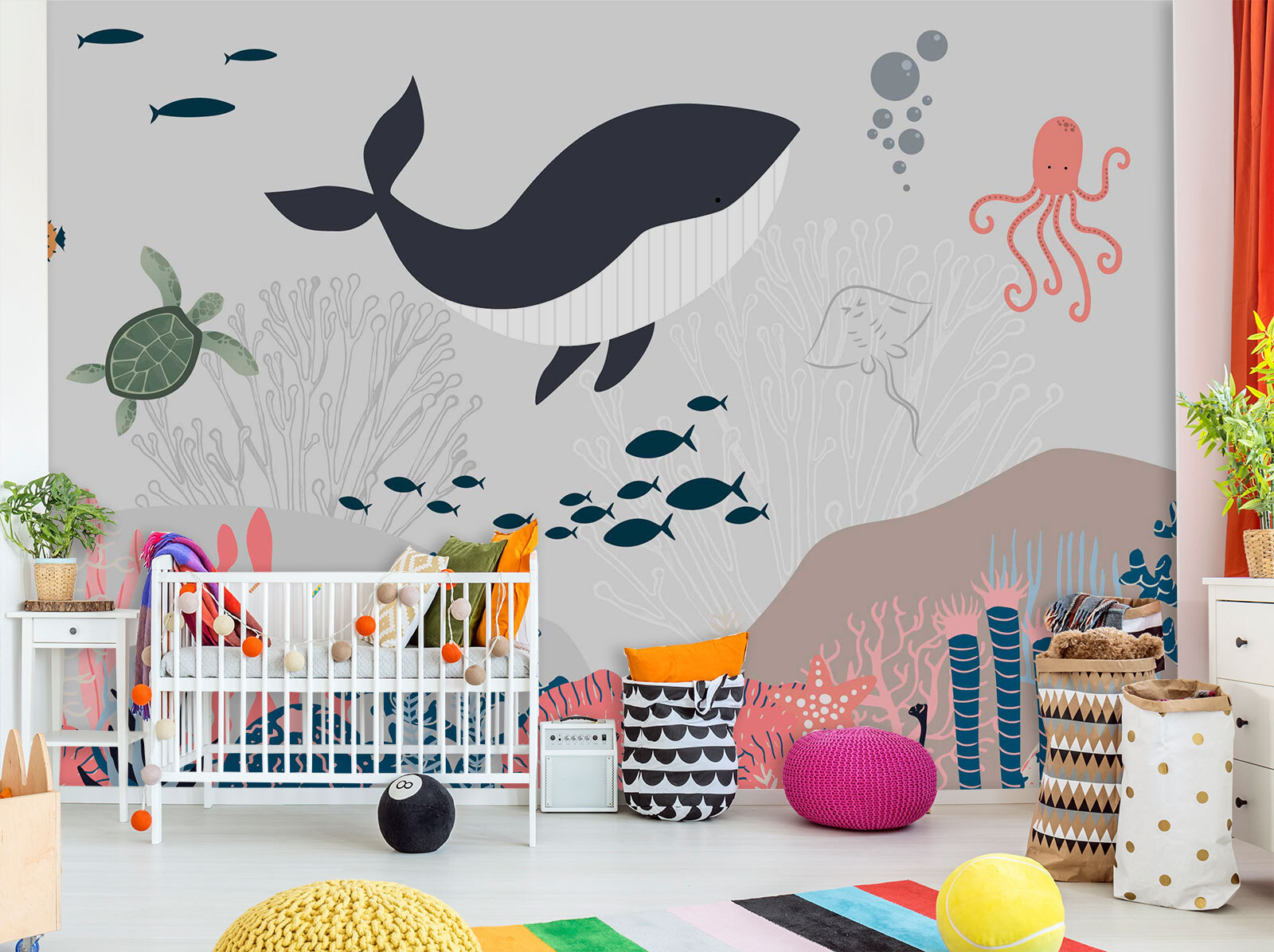 Ψάχνετε να προσθέσετε μια πινελιά διασκέδασης στο δωμάτιο του παιδιού σας; Δείτε τις “τοιχογραφίες τοίχου Φάλαινα και χελώνα κάτω από το νερό!” Αυτή η τοιχογραφία δεν είναι μόνο για τοίχους – είναι μια περιπέτεια κάτω από τη θάλασσα, μέσα στο σπίτι σας. Φανταστείτε μια χαρούμενη φάλαινα και μια περίεργη χελώνα, να κολυμπούν μαζί σε έναν πολύχρωμο υποβρύχιο κόσμο. Είναι ιδανική για να κεντρίσετε τη φαντασία των μικρών παιδιών και να δημιουργήσετε ιστορίες για τον ύπνο με περιπέτειες στον ωκεανό. Επιπλέον, δεν είναι υπερβολικά πολυάσχολη ή φωτεινή – μόνο μια απαλή παλέτα που καταπραΰνει και διασκεδάζει. Φανταστείτε τα μάτια του παιδιού σας να φωτίζονται όταν εντοπίζει το χταπόδι ή το κοπάδι ψαριών! Είναι σαν να έχετε ένα ενυδρείο χωρίς τη συντήρηση. Μια απολαυστική, παράξενη πινελιά για κάθε υπνοδωμάτιο ή παιδικό δωμάτιο. Βουτήξτε σε αυτή την τοιχογραφία και αφήστε την υποβρύχια μαγεία να ξεκινήσει!