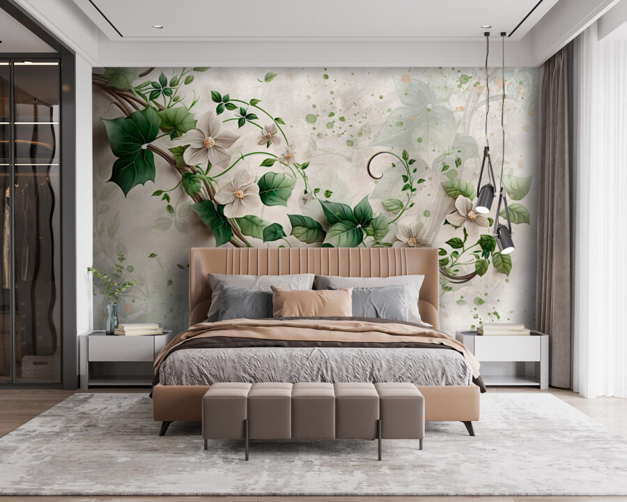 Transform your space with this delightful wall mural featuring blooming flowers and leafy vines. It’s like bringing a breath of fresh air indoors—without the pollen! Imagine walking into a room and feeling like you’ve stepped into a hidden garden, where every glance reveals the little details of nature.