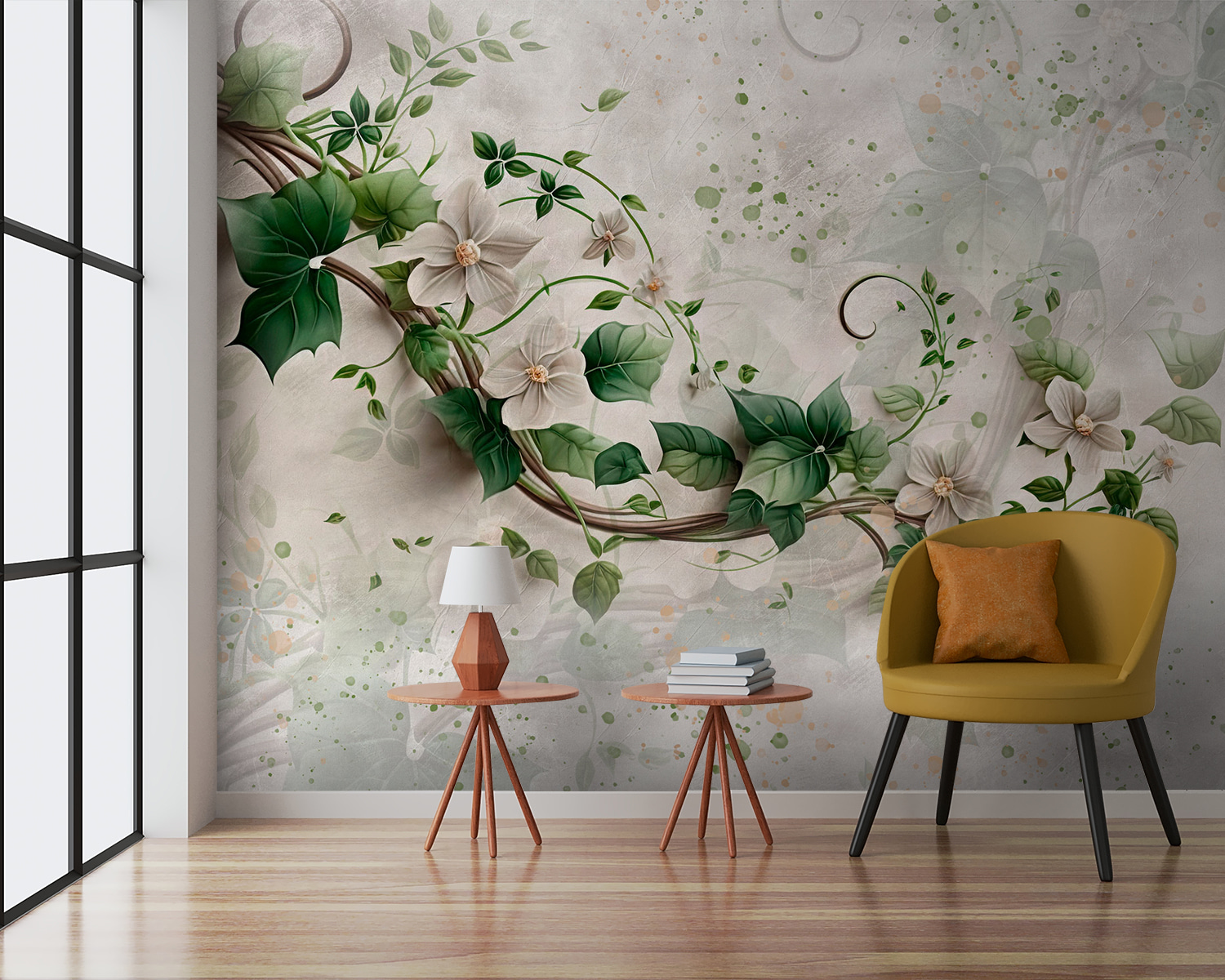 Transform your space with this delightful wall mural featuring blooming flowers and leafy vines. It’s like bringing a breath of fresh air indoors—without the pollen! Imagine walking into a room and feeling like you’ve stepped into a hidden garden, where every glance reveals the little details of nature.