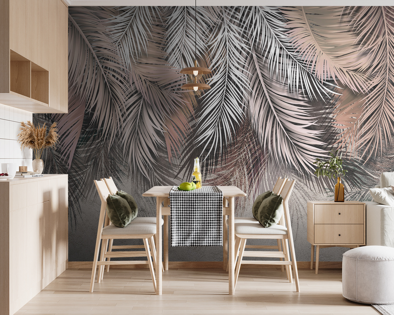 Κάθε φύλλο φαίνεται να ψιθυρίζει ιστορίες από μακρινές ακτές, προσθέτοντας μια μοναδική πινελιά που τραβάει το βλέμμα. Οικογένειες και φίλοι μπορούν να μαζευτούν εδώ, μοιράζοντας ιστορίες που ρέουν τόσο ομαλά όσο και η ίδια η τοιχογραφία. Δεν είναι απλά διακόσμηση, είναι μια εμπειρία, μια ατμόσφαιρα. Ποιος δεν θα ήθελε να χαλαρώσει με ένα δροσερό ποτό, νιώθοντας τη γοητεία της φύσης στο σπίτι του; Ελάτε λοιπόν, αφήστε τους τοίχους σας να αναπνεύσουν τροπικό αέρα!