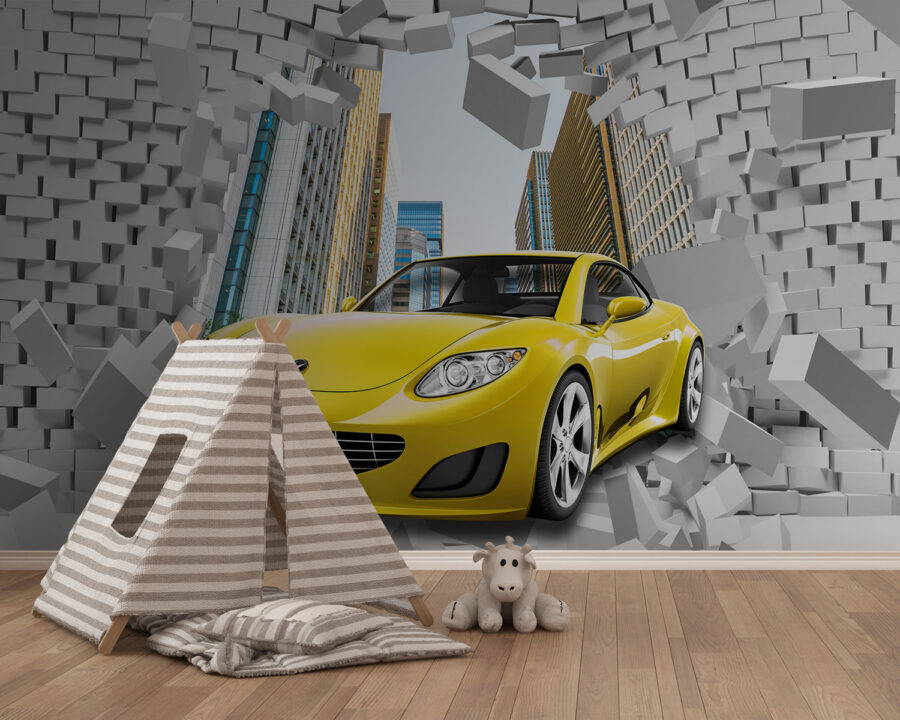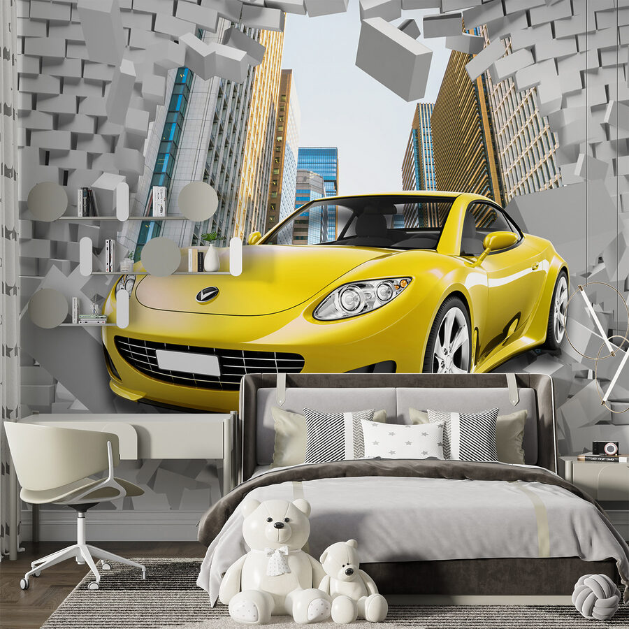 Σκεφτήκατε ποτέ να δώσετε μια πινελιά ενθουσιασμού στο δωμάτιό σας; Φανταστείτε ένα σπορ αυτοκίνητο να διαπερνά έναν τοίχο από τούβλα ακριβώς στον τοίχο σας! Αυτή η τοιχογραφία είναι ιδανική αν έχετε έναν μικρό λάτρη των αυτοκινήτων στο σπίτι – ή ακόμα και κάποιον που αγαπάει λίγο δραματικό αέρα. Αποτελεί μέρος των συλλογών “Automobile” και “Brick Wall”, αλλά είναι επίσης φανταστική για παιδικά δωμάτια. Η ενέργεια των τούβλων που συντρίβονται και το κομψό, κίτρινο αυτοκίνητο προσθέτουν ένα ποπ χρώμα και δράση. Είναι σαν να προσθέτετε μια δόση αδρεναλίνης στη διακόσμησή σας. Σοβαρά, μπορείτε να φανταστείτε τα βλέμματα στα πρόσωπα των καλεσμένων σας; Απόλυτη έκπληξη.