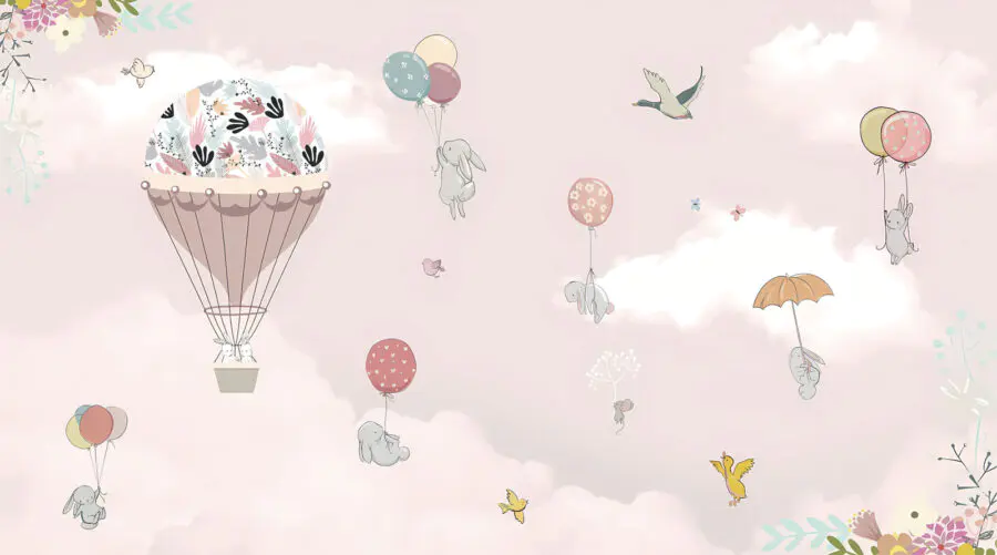 Φανταστείτε να ξυπνάτε σε έναν μαγευτικό κόσμο όπου αξιολάτρευτα λαγουδάκια αιωρούνται στον ουρανό, κρατώντας πολύχρωμα μπαλόνια και ομπρέλες – αυτή η τοιχογραφία είναι σκέτη μαγεία για κάθε παιδικό δωμάτιο! Οι απαλές παστέλ αποχρώσεις και τα ευφάνταστα αερόστατα δημιουργούν μια ονειρική απόδραση ακριβώς στον τοίχο. Είναι σαν να μπαίνετε σε ένα παραμύθι κάθε πρωί. Ιδανικό για να εξάψει τη φαντασία και να προσθέσει μια πινελιά γοητείας. Επιπλέον, ποιος δεν θα χαμογελούσε με ένα κουνέλι που πέφτει με αλεξίπτωτο με μια ομπρέλα; Ιδανικό για παιδιά και για όλους όσους έχουν νεανική καρδιά. Αυτή η τοιχογραφία πρακτικά ψιθυρίζει παραμύθια! Εγγυημένη ζεστή ατμόσφαιρα.