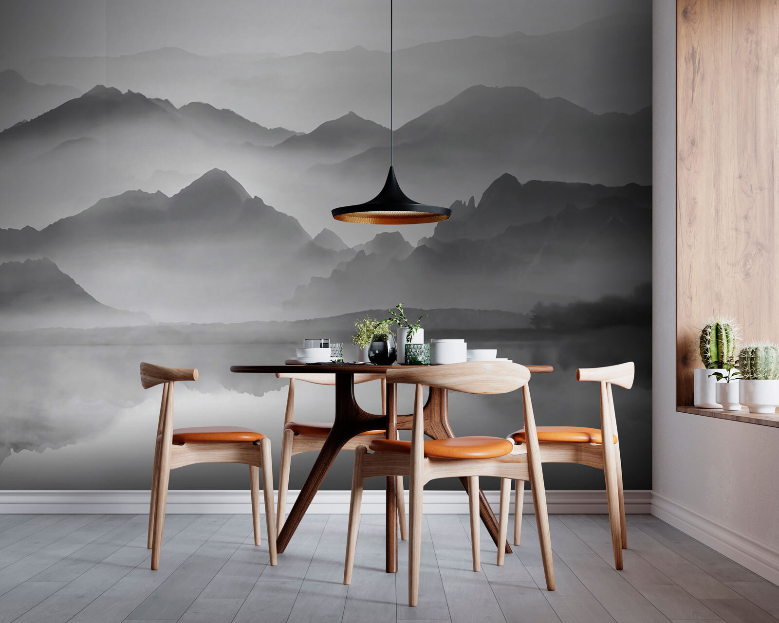 Φανταστείτε να έχετε αυτή την εντυπωσιακή τοιχογραφία “Τοπίο με ομίχλη και βουνά” να κοσμεί τον τοίχο σας. Είναι σαν να κρυφοκοιτάζετε από το παράθυρο μιας άνετης καμπίνας, ψηλά στα βουνά, αλλά χωρίς να χρειάζεται να βγείτε από το σαλόνι σας. Αυτές οι ομιχλώδεις κορυφές και οι ονειρικές κοιλάδες μοιάζουν να εκτείνονται για πάντα, σωστά;