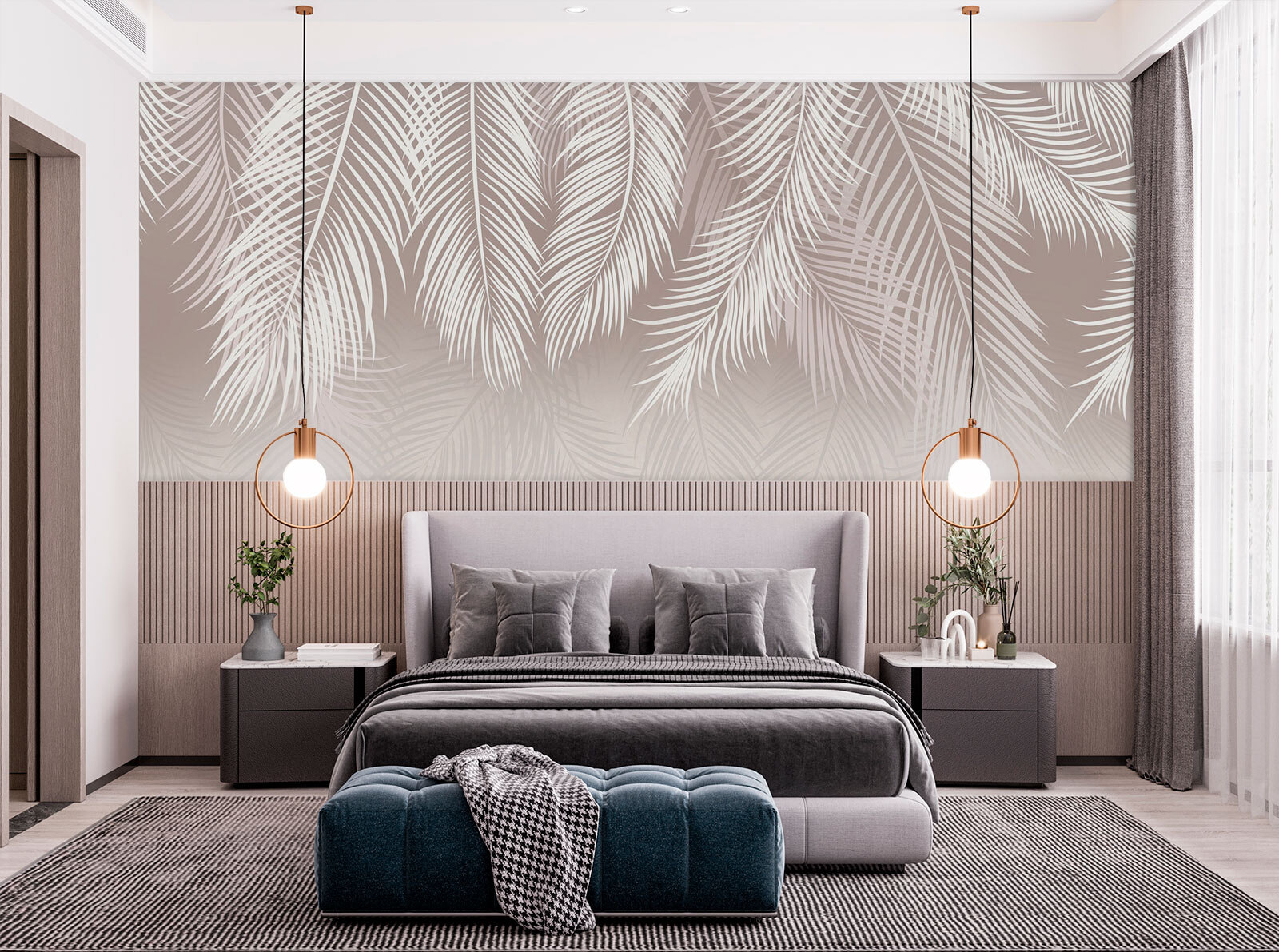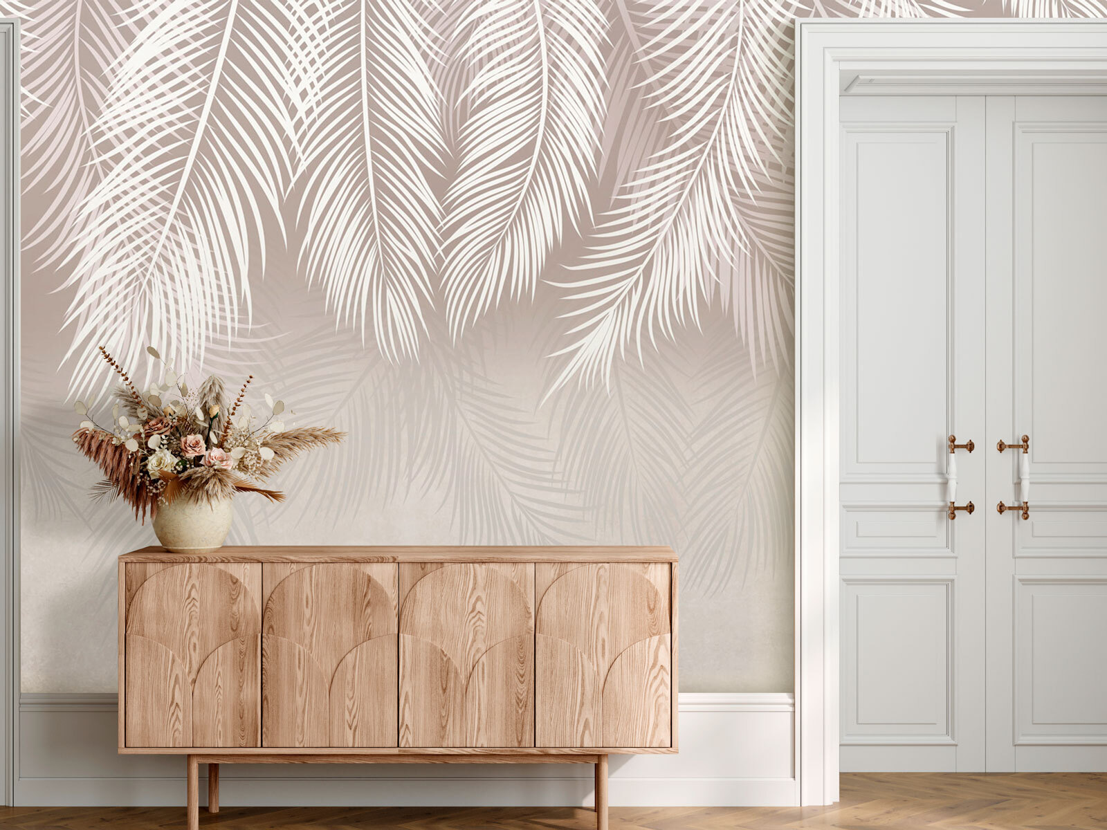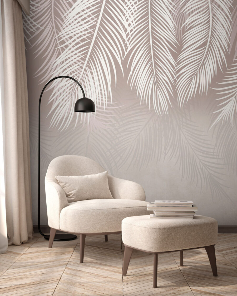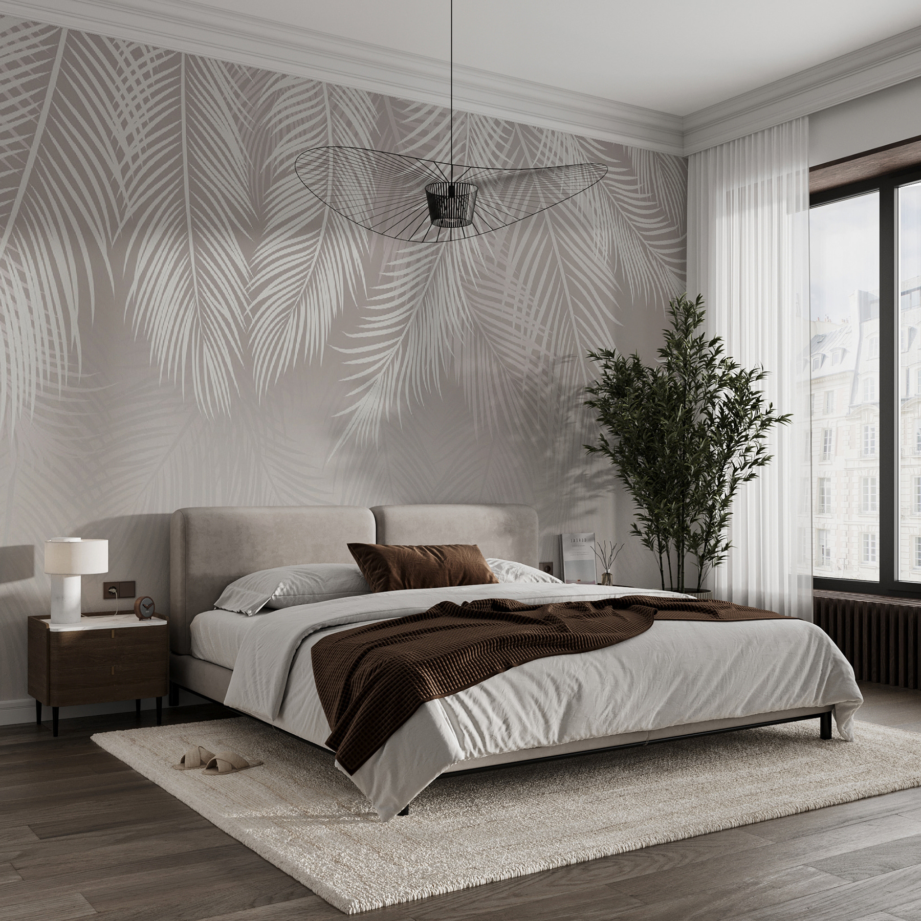 Μεταμορφώστε το χώρο σας με αυτή την κομψή τοιχογραφία με φύλλα φοίνικα, ένα τέλειο μείγμα ηρεμίας και στυλ. Φανταστείτε να μπαίνετε σε ένα δωμάτιο που ψιθυρίζει χαλάρωση με κάθε σας ματιά. Τα απαλά, διακριτικά φύλλα δημιουργούν ένα ηρεμιστικό σκηνικό, σαν να μπαίνετε σε έναν γαλήνιο τροπικό παράδεισο χωρίς να βγαίνετε από το σπίτι σας. Είναι σαν να έχετε μια μίνι-διακοπή στον τοίχο σας. Οι φίλοι μπορεί να ρωτήσουν αν εγκαταστήσατε ένα παράθυρο σε κάποιον καταπράσινο κήπο. Ιδανική για μια άνετη γωνιά ανάγνωσης ή ένα ζωντανό σαλόνι, αυτή η τοιχογραφία φέρνει μια ανάσα φρέσκου αέρα και μια πινελιά φύσης στο εσωτερικό.