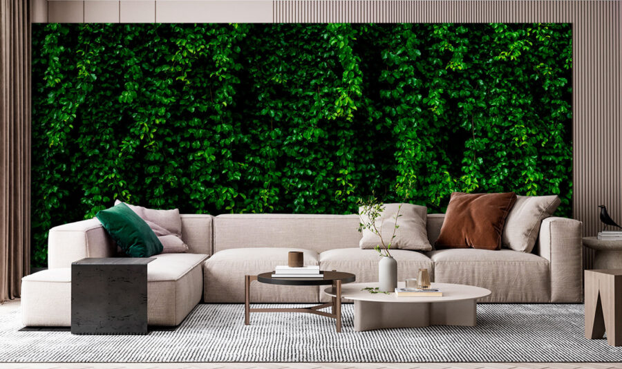 Ταπετσαρίες Ζωντανό πράσινο φόντο τοίχου με φύλλωμα. (Κωδικός προϊόντος: u94381)