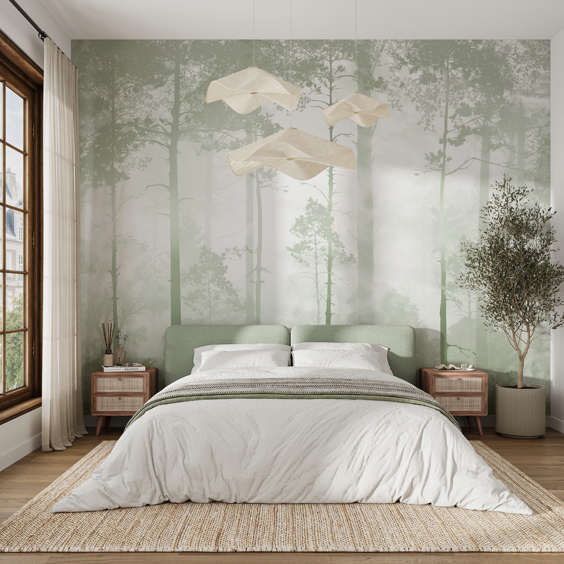 Μεταμορφώστε οποιοδήποτε δωμάτιο σε ένα γαλήνιο καταφύγιο με αυτή την τοιχογραφία δάσους με ομίχλη. Φανταστείτε να ξυπνάτε μπροστά στην ήρεμη θέα ψηλών δέντρων τυλιγμένων στην ομίχλη, σαν να μπαίνετε σε ένα ηρεμιστικό όνειρο. Δεν είναι απλώς μια επένδυση τοίχου- είναι μια πρόσκληση να αναπνεύσετε αυτόν τον καθαρό αέρα του δάσους, ακόμη και αν πίνετε καφέ στην κουζίνα σας. Φανταστείτε μια ζεστή γωνιά ανάγνωσης που περιβάλλεται από αυτό το γαλήνιο σκηνικό – απόλυτα ιδανικό για να κουρνιάσετε με ένα καλό βιβλίο. Και ποιος δεν θα ήθελε ο χώρος του να νιώθει λίγο πιο μαγικός; Με ήπια πράσινα και απαλά σχέδια, είναι σαν η φύση να αποφάσισε να κάνει παρέα στο σαλόνι σας. Ιδανικό για εκείνες τις στιγμές που η ζωή μοιάζει λίγο πιο χαοτική. Αφήστε αυτή την τοιχογραφία να φέρει λίγη γαλήνη στο σπίτι σας.
