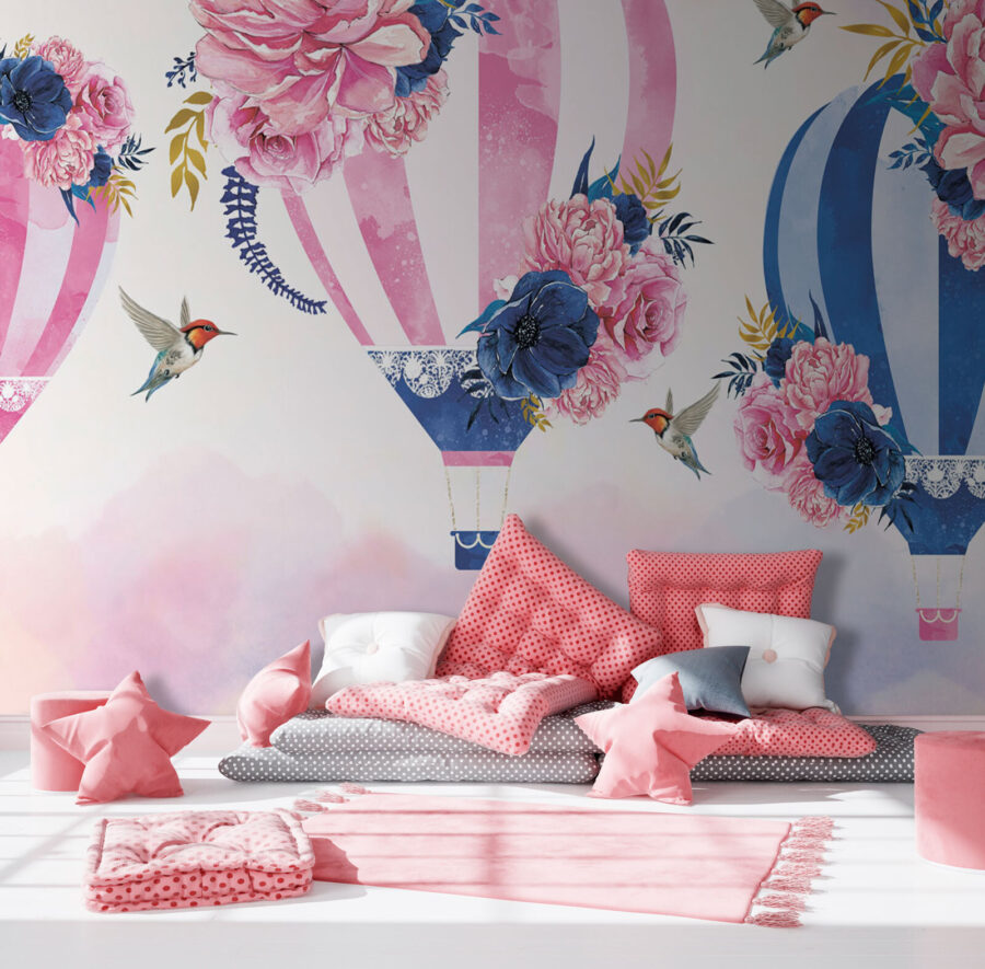 Μεταμορφώστε τον χώρο σας με αυτή την ονειρική ταπετσαρία που απεικονίζει μια ομάδα αερόστατων διακοσμημένων με όμορφα λουλούδια. Φανταστείτε να μπαίνετε σε ένα δωμάτιο που μοιάζει να αιωρείται σε ένα απαλό αεράκι, όπου κάθε αερόστατο προσθέτει μια νότα χρώματος και φαντασίας. Οι απαλές αποχρώσεις και τα λεπτεπίλεπτα λουλούδια δημιουργούν μια γαλήνια ατμόσφαιρα, ιδανική για μια ζεστή γωνιά ανάγνωσης ή ένα χαρούμενο παιδικό δωμάτιο. Και αυτά τα μικρά κολιμπρί; Είναι αξιολάτρευτα! Είναι σαν η φύση και η τέχνη να είχαν μια υπέροχη συζήτηση και εσείς να απολαμβάνετε το αριστούργημα. Ποιος δεν θα ένιωθε λίγο πιο ελαφρύς μόνο κοιτάζοντάς το; Ιδανικό για όσους πιστεύουν ότι μια πινελιά μαγείας μπορεί να ζήσει σε κάθε γωνιά του σπιτιού σας!