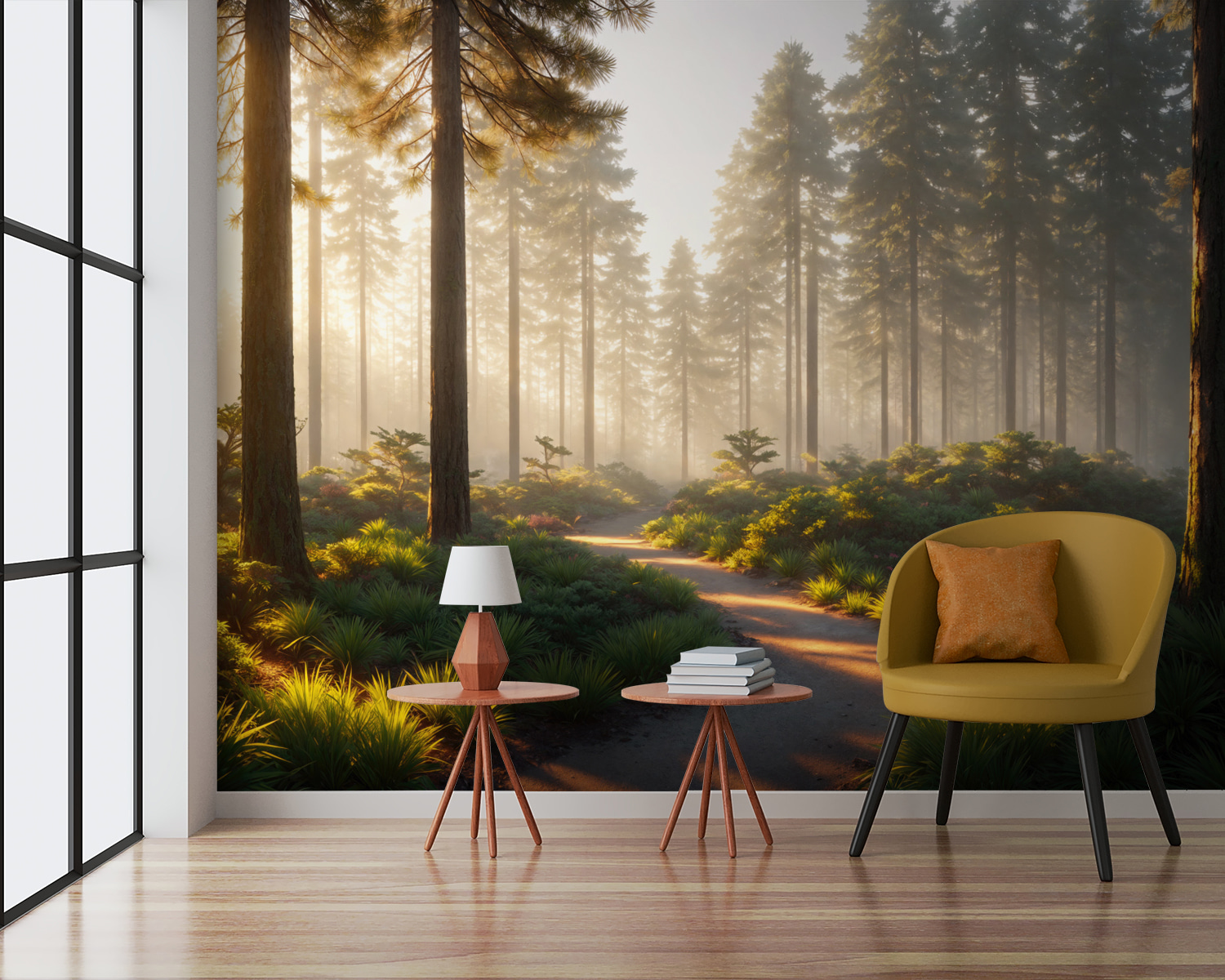 Μεταμορφώστε το χώρο σας σε μια γαλήνια απόδραση με τις τοιχογραφίες Sunlit Forest Path Through Trees. Φανταστείτε να μπαίνετε σε ένα γαλήνιο δάσος απευθείας από το σαλόνι σας. Το απαλό πρωινό φως που φιλτράρεται μέσα από τα ψηλά δέντρα δημιουργεί μια γαλήνια ατμόσφαιρα. Είναι σαν μια ευγενική υπενθύμιση ήσυχων πεζοποριών και ψιθυριστών αεριών, ιδανική για ονειροπολήσεις ή μια στιγμιαία παύση στο χάος της ζωής. Αυτή η τοιχογραφία φέρνει ζεστασιά και μια ανάσα φρέσκου αέρα, προσκαλώντας τη φύση μέσα στο σπίτι. Επιπλέον, μπορεί να σας εμπνεύσει να πάρετε τις μπότες σας για πεζοπορία και να βγείτε στο μονοπάτι – προσέξτε για σκίουρους!