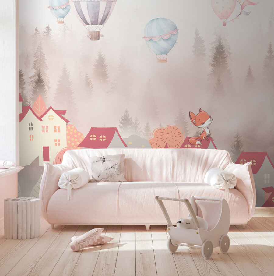 Μεταμορφώστε τον χώρο σας με αυτή την ευφάνταστη ταπετσαρία τοίχου που απεικονίζει μια γοητευτική αλεπού καθισμένη πάνω σε πολύχρωμες στέγες. Φανταστείτε την ηρεμία που προσφέρει, σαν ένα ζεστό παραμύθι στο σπίτι σας! Αερόστατα αιωρούνται νωχελικά στον ουρανό, προσθέτοντας μια παιχνιδιάρικη πινελιά και προκαλώντας ονειροπολήσεις για περιπέτειες. Ιδανική για παιδικό δωμάτιο ή μια ζεστή γωνιά ανάγνωσης, είναι μια ευχάριστη υπενθύμιση να αγκαλιάζουμε τη φαντασία στην καθημερινή μας ζωή. Οι απαλές αποχρώσεις δημιουργούν μια φιλόξενη ατμόσφαιρα – ποιος θα μπορούσε να αντισταθεί σε μια ταπετσαρία που προκαλεί χαρά κάθε φορά που περνάτε από μπροστά της; Είναι σαν να έχετε λίγη μαγεία στον τοίχο σας!