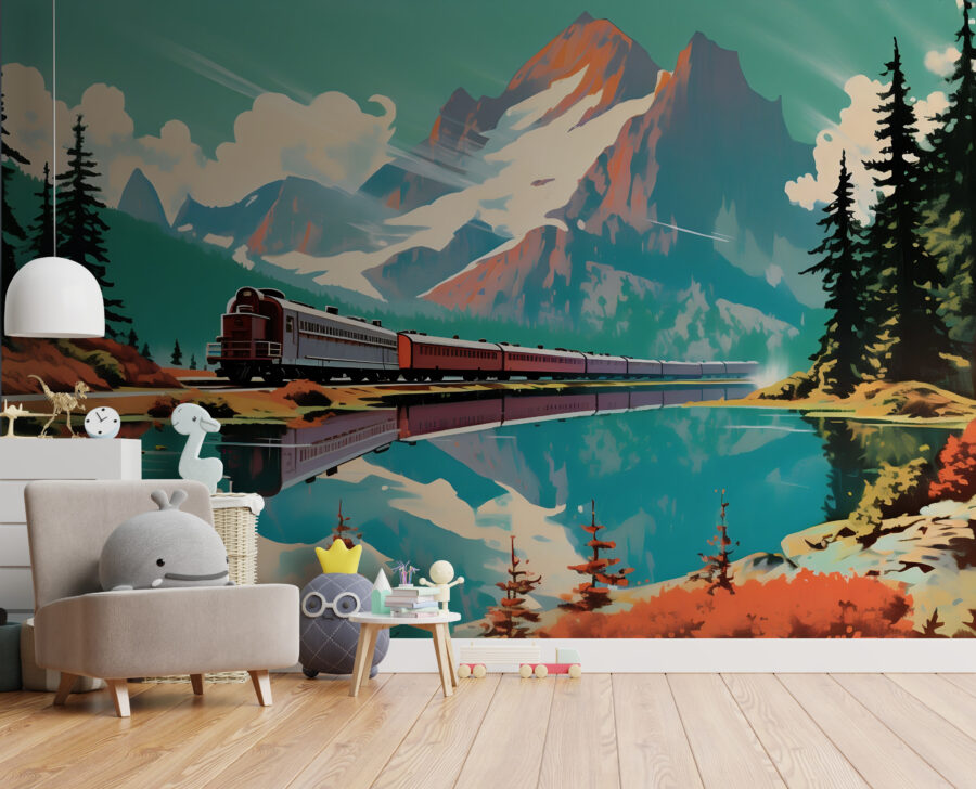 Φανταστείτε αυτό: ένα τρένο που τρέχει, διασχίζοντας μια μαγευτική οροσειρά, η οποία αντανακλάται τέλεια σε μια γαλήνια λίμνη. Ναι, το “Ταπετσαρίες Train passing by a mountain” το αποτυπώνει αυτό σε μια βουτιά ζωντανών χρωμάτων. Είναι σαν ένα εισιτήριο περιπέτειας για τους τοίχους σας, που σας ταξιδεύει σε μέρη όπου η δόξα της φύσης συναντά τη συγκίνηση του ταξιδιού. Ιδανικό για το δωμάτιο του παιδιού σας, το καταφύγιο ενός εφήβου ή σχεδόν οπουδήποτε χρειάζεστε μια δόση περιπλάνησης. Έχει κάτι ειρηνικό και συναρπαστικό – σχεδόν σαν να ακούτε τη σφυρίχτρα του τρένου και να νιώθετε τον καθαρό αέρα του βουνού. Ιδανικό για να πυροδοτήσετε ονειροπολήσεις ή να μετατρέψετε ένα δωμάτιο σε μια ζεστή απόδραση!