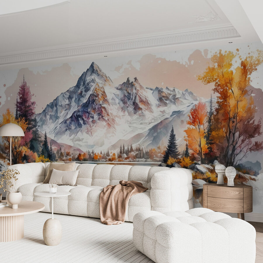 Φανταστείτε να μπαίνετε σε ένα δωμάτιο και να αισθάνεστε αμέσως ότι μεταφέρεστε σε μια ιδιόρρυθμη χώρα θαυμάτων – αυτή η τοιχογραφία κάνει ακριβώς αυτό. Με τη μαγευτική ζωγραφική ενός δέντρου που φοράει ζωντανά πορτοκαλί φύλλα, είναι σαν το φθινόπωρο να αναβαθμίστηκε και να μετακόμισε σε εσωτερικό χώρο! Ιδανική για το δωμάτιο ενός παιδιού ή οπουδήποτε θέλετε να πασπαλίσετε λίγο μαγικό ορεινό τοπίο – σοβαρά, αυτή η τέχνη θα μπορούσε να γοητεύσει και ένα γιέτι. Το εφέ υδατογραφίας προσθέτει μια ονειρική ατμόσφαιρα, κάνοντάς το να μοιάζει σχεδόν σαν μια απαλή αγκαλιά από την ίδια τη φύση. Είτε πίνετε καφέ είτε κάνετε ένα μυστικό πάρτι τσαγιού με λούτρινα ζωάκια, αυτή η τοιχογραφία είναι ένα πολύχρωμο σκηνικό που ψιθυρίζει γαλήνη και περιπέτεια ταυτόχρονα.