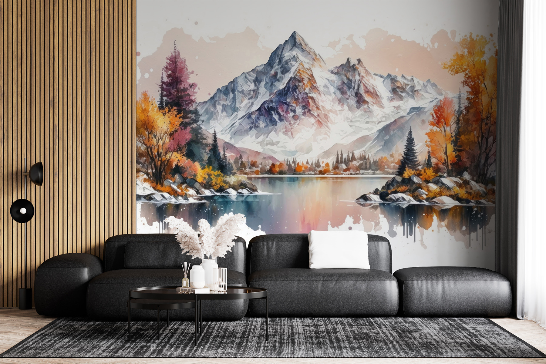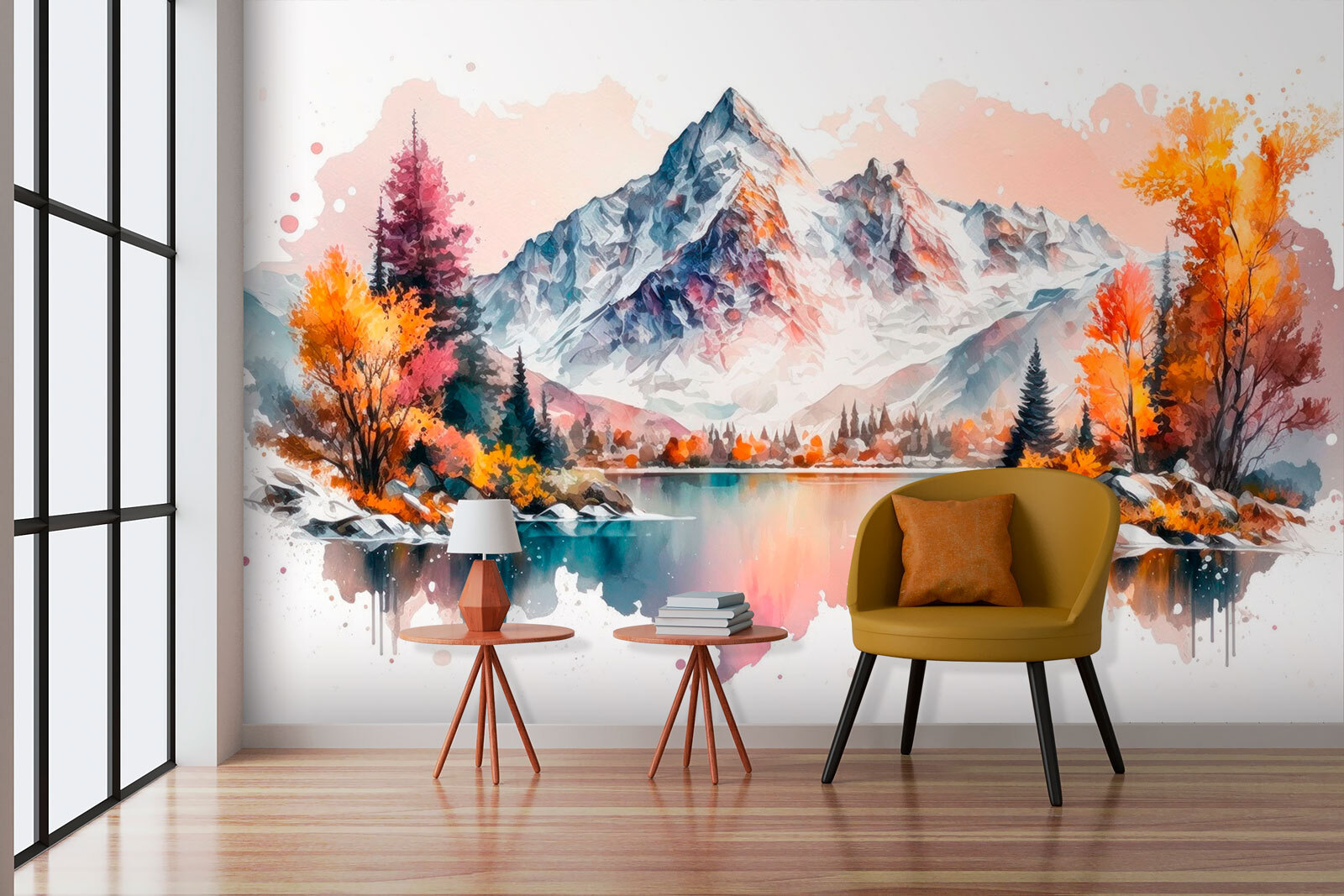 Φανταστείτε να μπαίνετε σε ένα δωμάτιο και να αισθάνεστε αμέσως ότι μεταφέρεστε σε μια ιδιόρρυθμη χώρα θαυμάτων – αυτή η τοιχογραφία κάνει ακριβώς αυτό. Με τη μαγευτική ζωγραφική ενός δέντρου που φοράει ζωντανά πορτοκαλί φύλλα, είναι σαν το φθινόπωρο να αναβαθμίστηκε και να μετακόμισε σε εσωτερικό χώρο! Ιδανική για το δωμάτιο ενός παιδιού ή οπουδήποτε θέλετε να πασπαλίσετε λίγο μαγικό ορεινό τοπίο – σοβαρά, αυτή η τέχνη θα μπορούσε να γοητεύσει και ένα γιέτι. Το εφέ υδατογραφίας προσθέτει μια ονειρική ατμόσφαιρα, κάνοντάς το να μοιάζει σχεδόν σαν μια απαλή αγκαλιά από την ίδια τη φύση. Είτε πίνετε καφέ είτε κάνετε ένα μυστικό πάρτι τσαγιού με λούτρινα ζωάκια, αυτή η τοιχογραφία είναι ένα πολύχρωμο σκηνικό που ψιθυρίζει γαλήνη και περιπέτεια ταυτόχρονα.