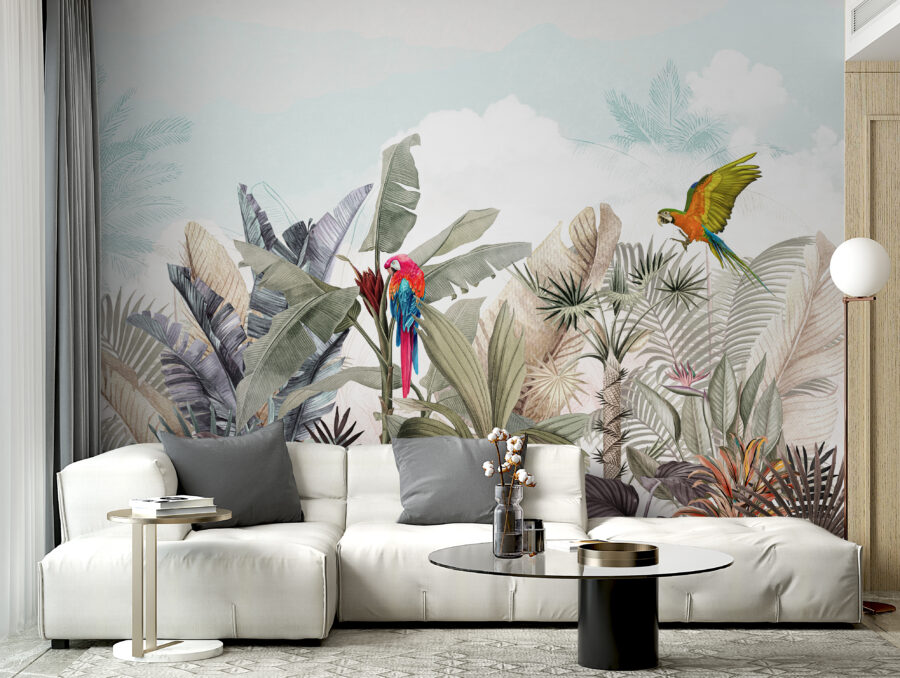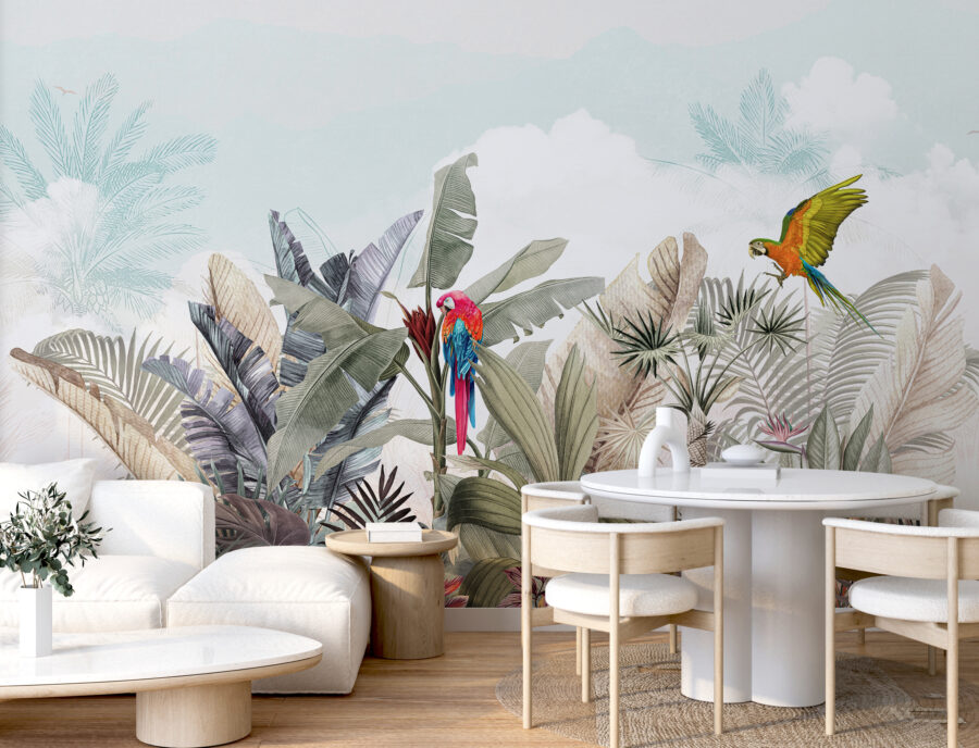 Γνωρίστε τη νέα σας εμμονή στον τοίχο: την τοιχογραφία “Πολύχρωμος παπαγάλος που πετάει στον αέρα”. Είναι σαν να βρίσκεις το όνειρο ενός παρατηρητή πουλιών να προσγειώνεται στο σαλόνι σου! Φανταστείτε δύο ζωηρούς παπαγάλους να γλιστρούν πάνω από φυλλώδη πράσινα και τροπικά λουλούδια. Είναι σαν μια μίνι-διακοπή στο τροπικό δάσος – χωρίς τα κουνούπια, δόξα τω Θεώ!